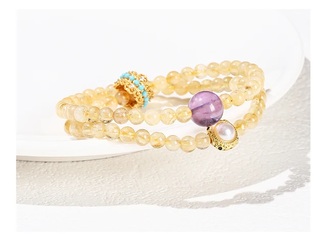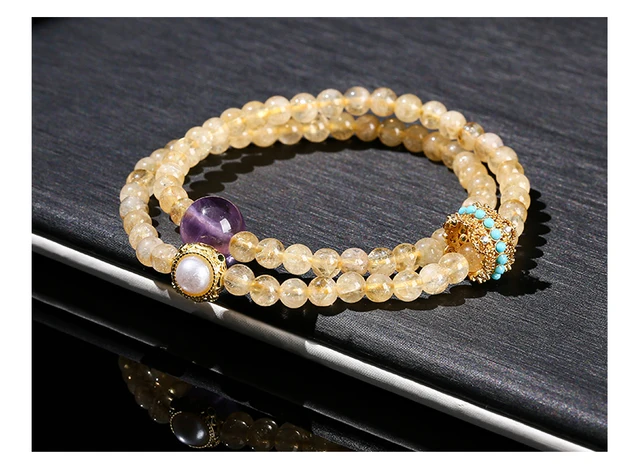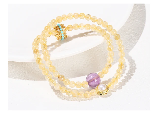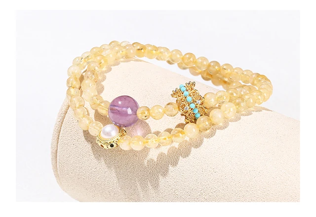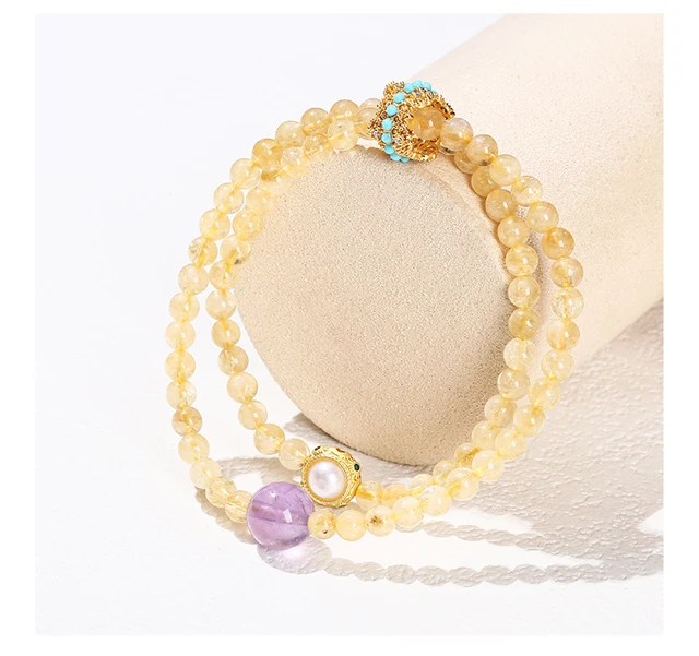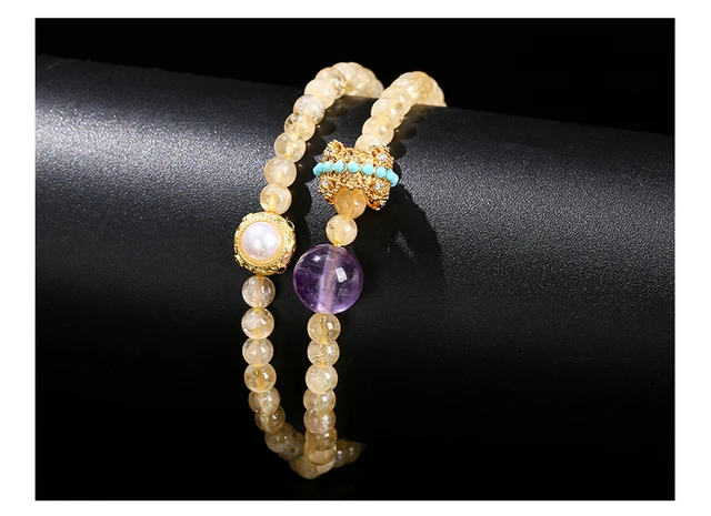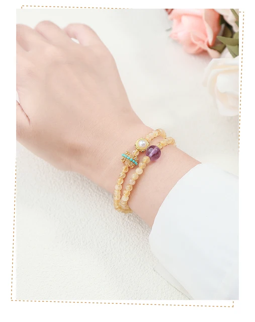 Natural Stone Citrine Amethyst Lucky Shell Bead Ring 2-Layer Bracelet Women Genuine Wealth Crystal Elastic Bangles For Female