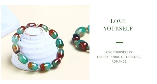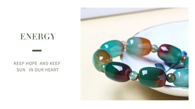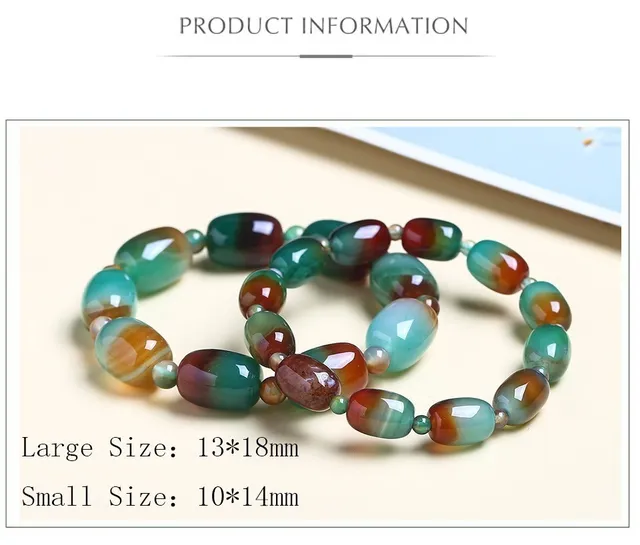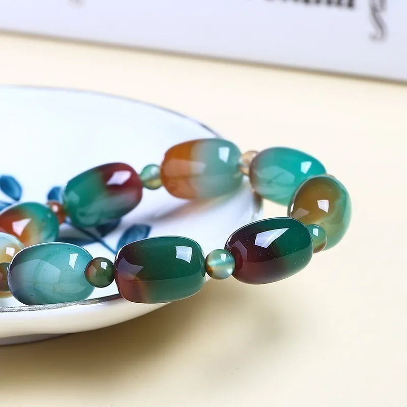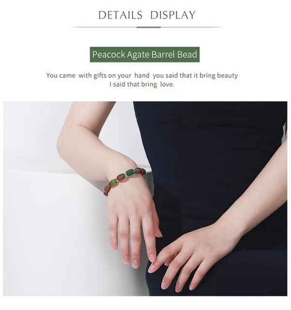 Natural Stone Colorful Green Peacock Agate Charm Bracelet Women Elegant Barrel Shape Healing Bangles Couples Jewelry Gift