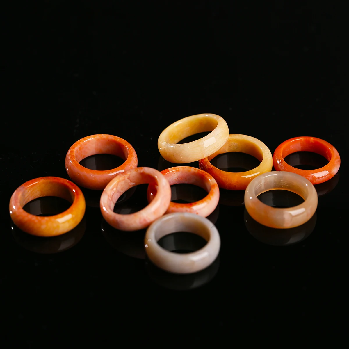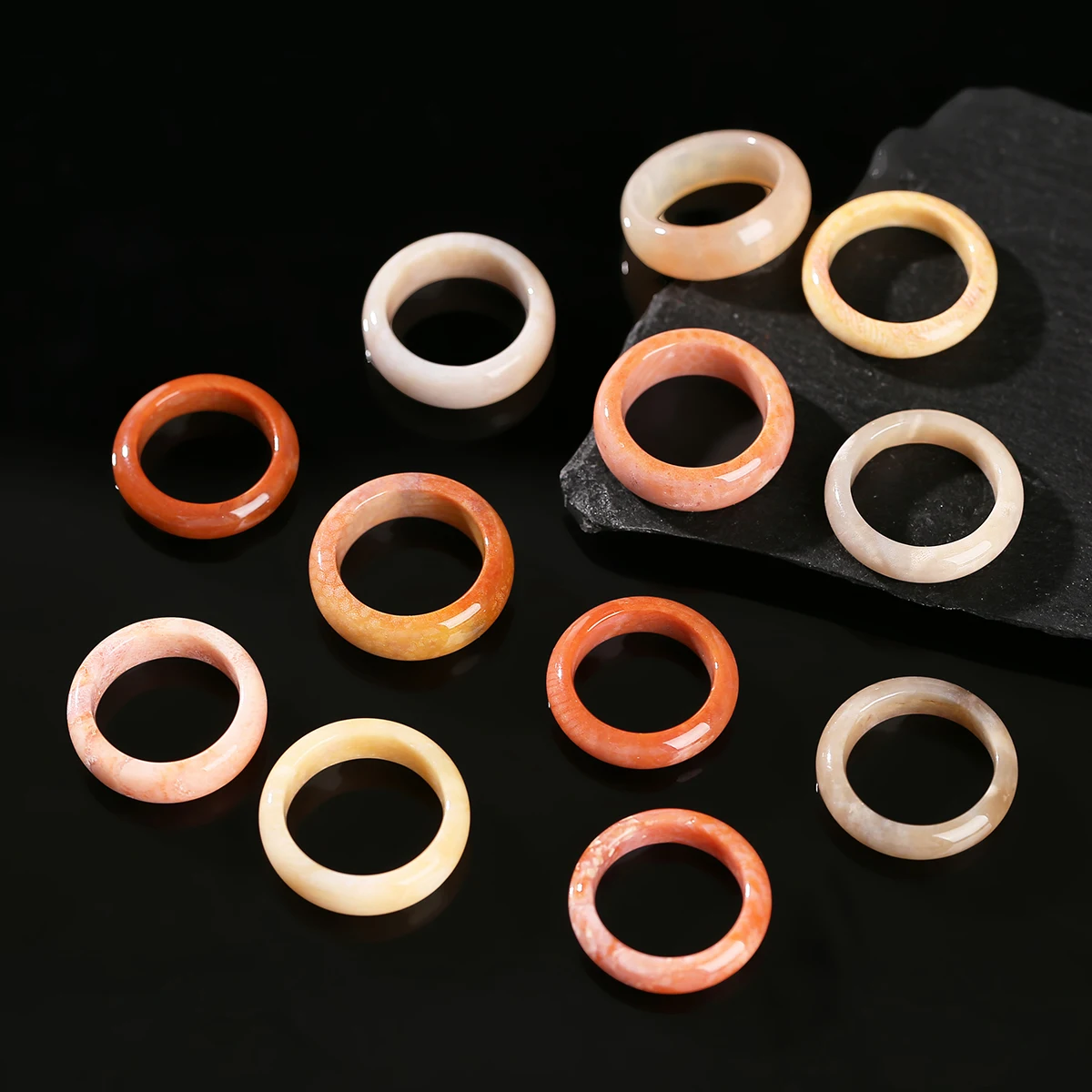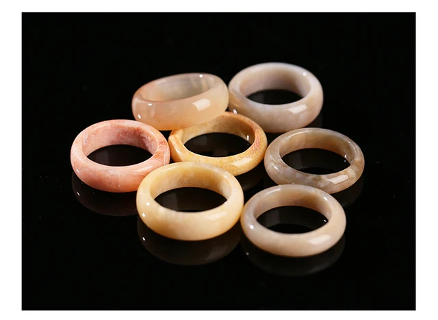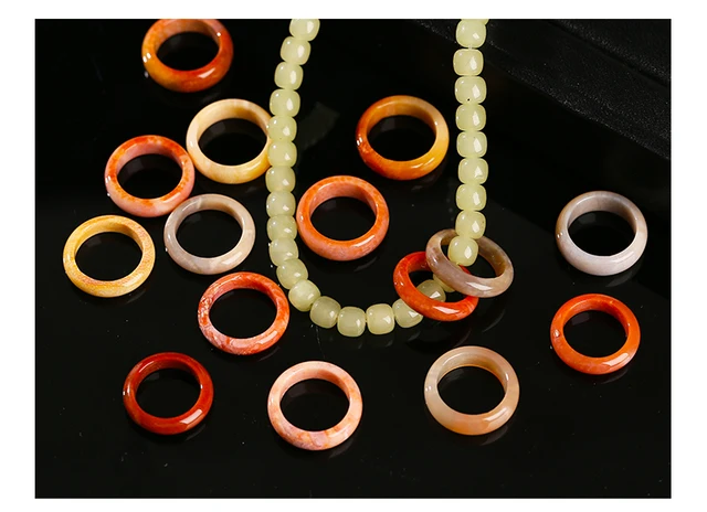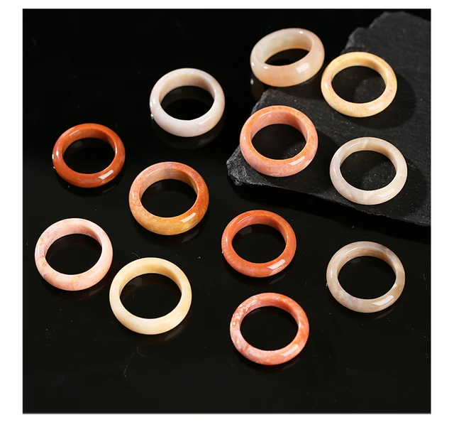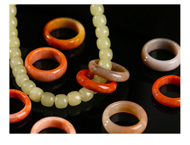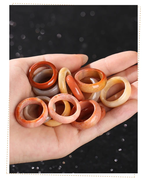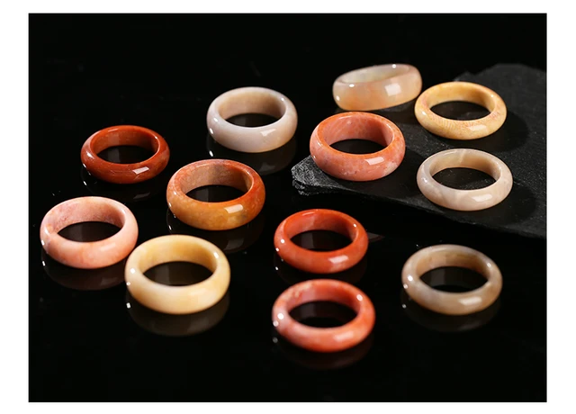 Natural Stone Coral Jade Hand Rings Women Men Vintage Style Healing Gemstone Carved Finger Rings Bestfriend Birthday Jewelry