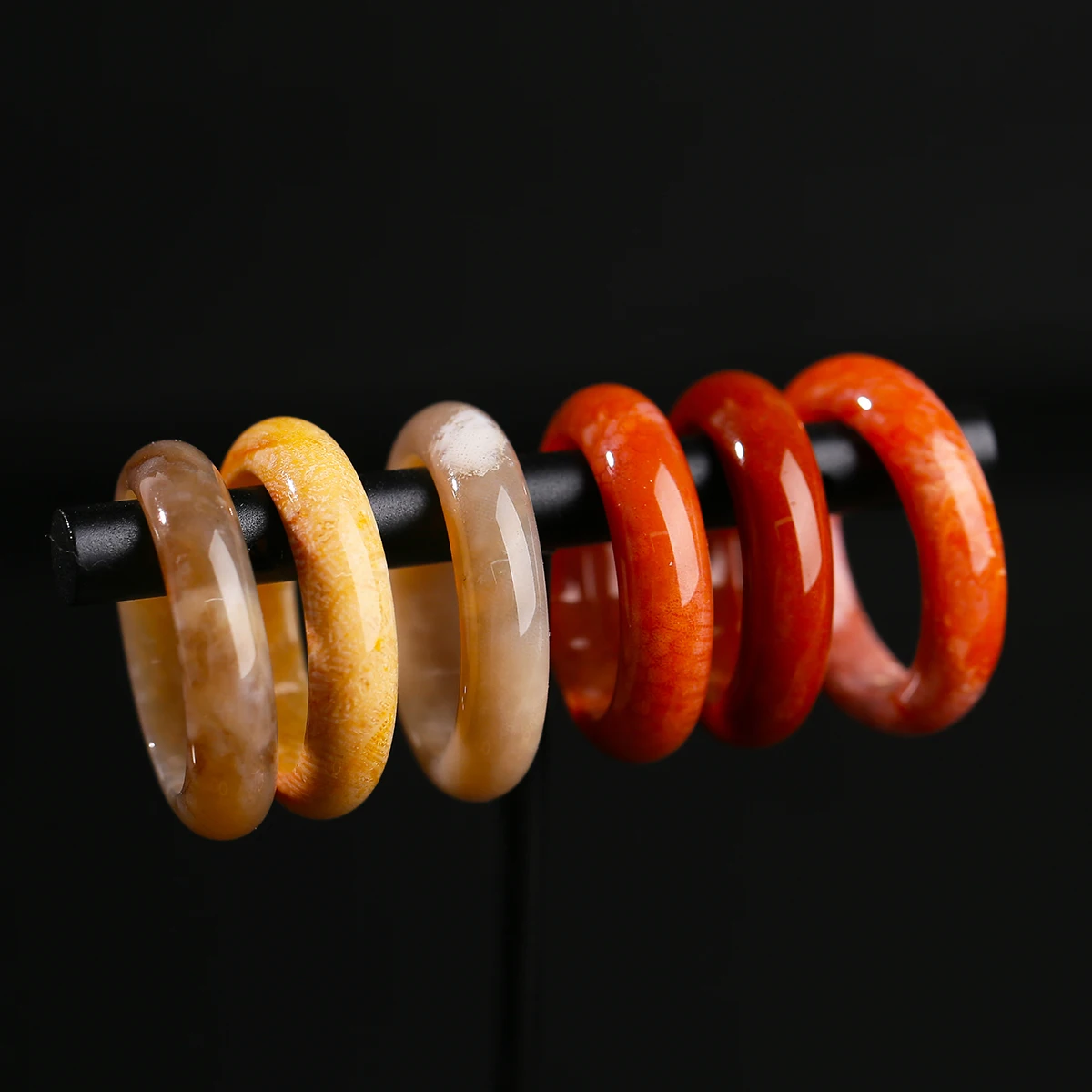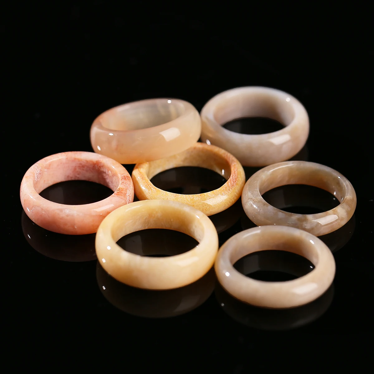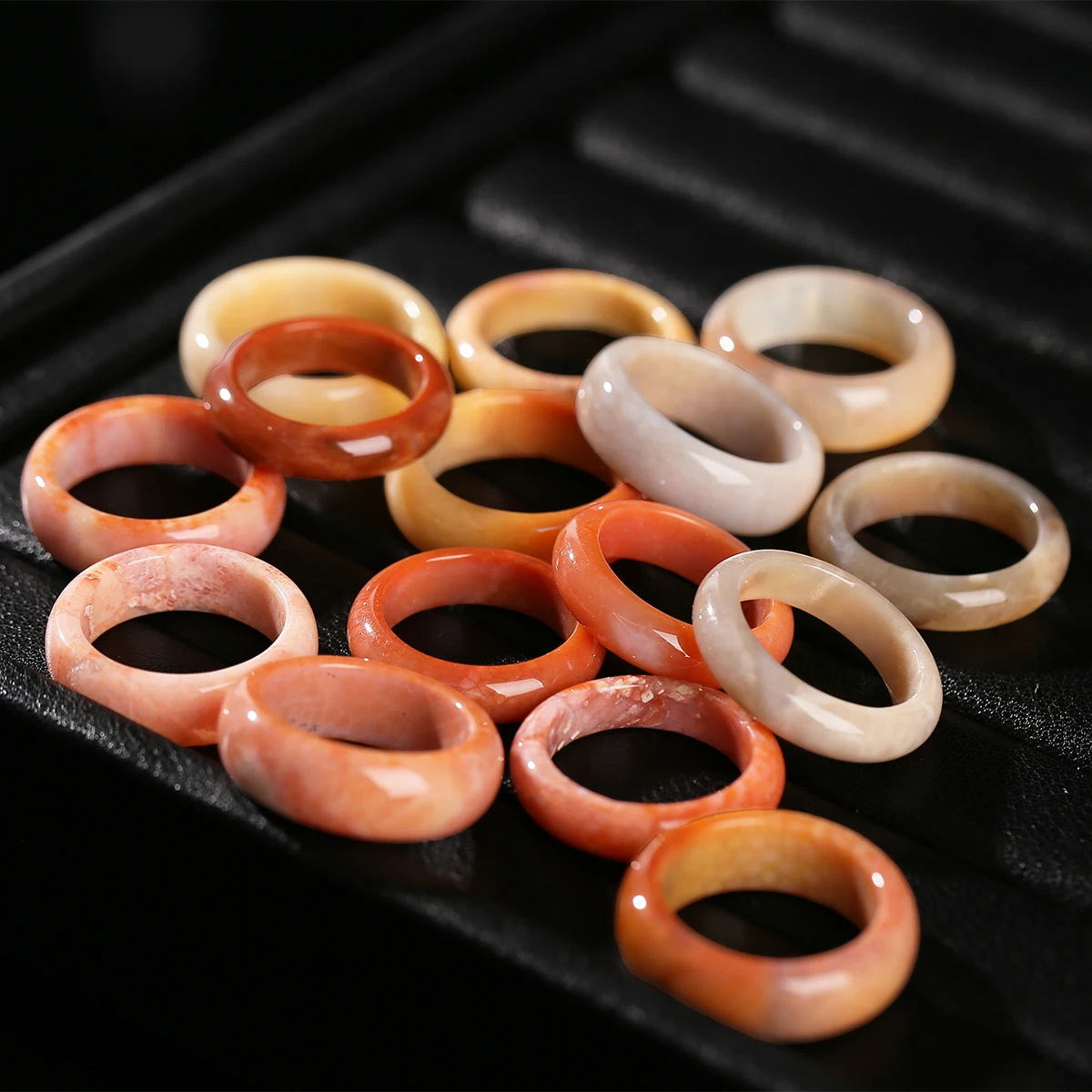 Natural Stone Coral Jade Hand Rings Women Men Vintage Style Healing Gemstone Carved Finger Rings Bestfriend Birthday Jewelry
