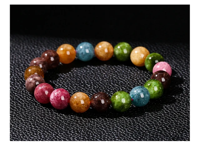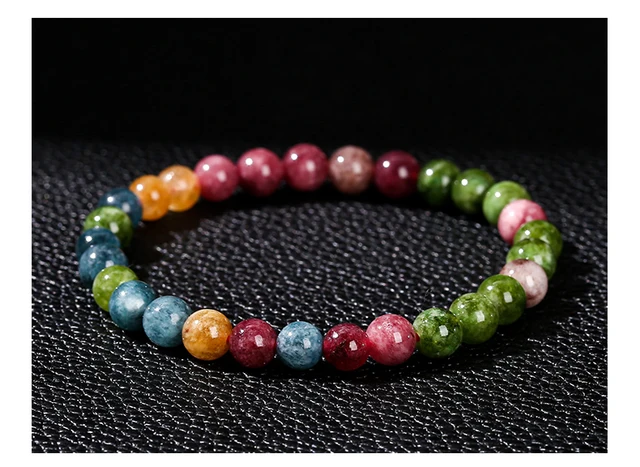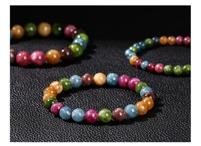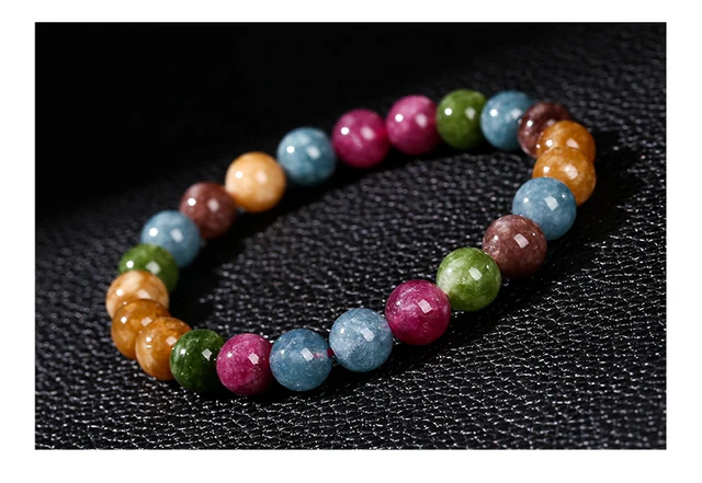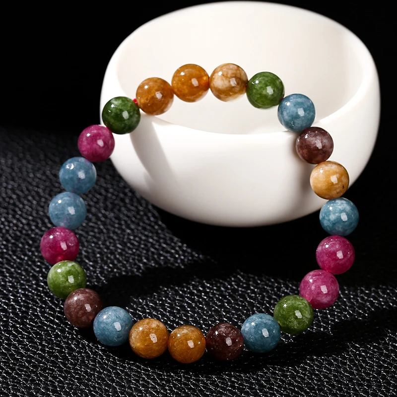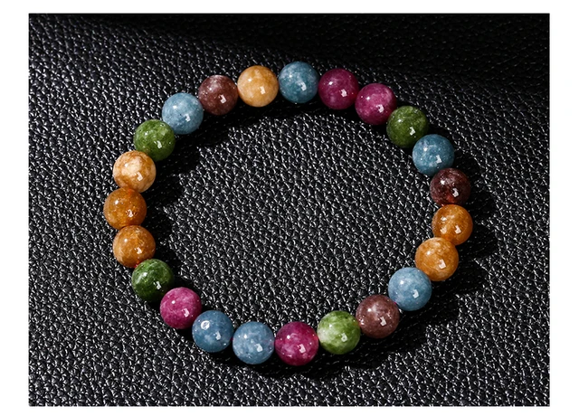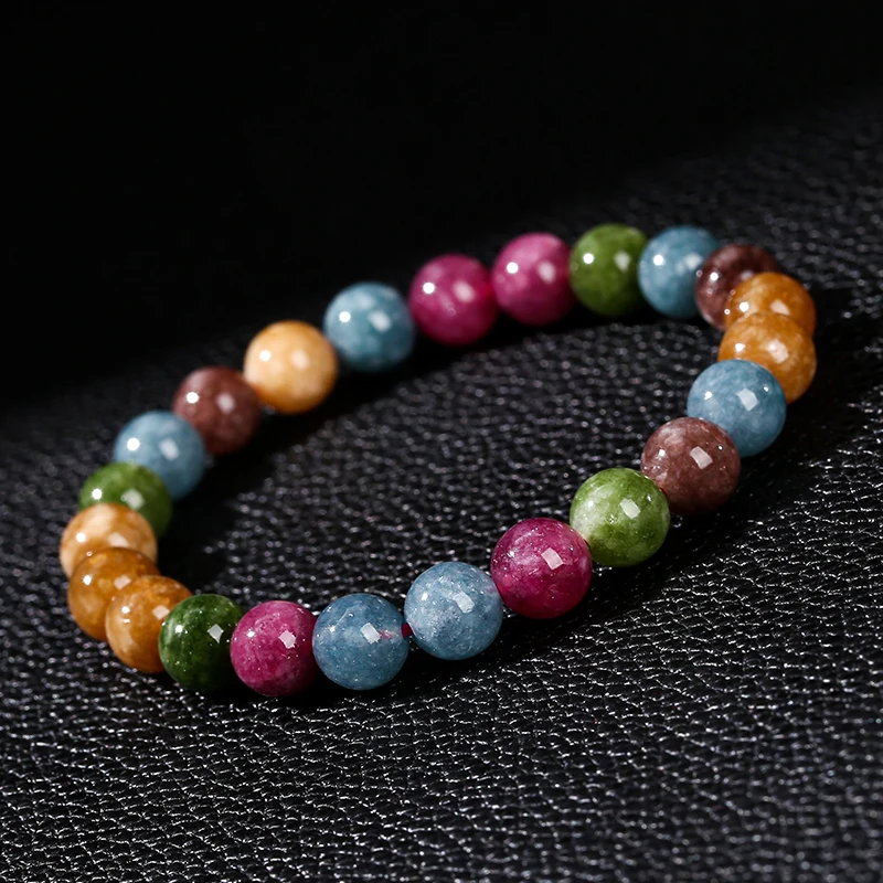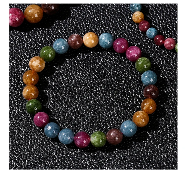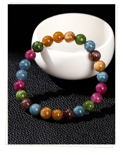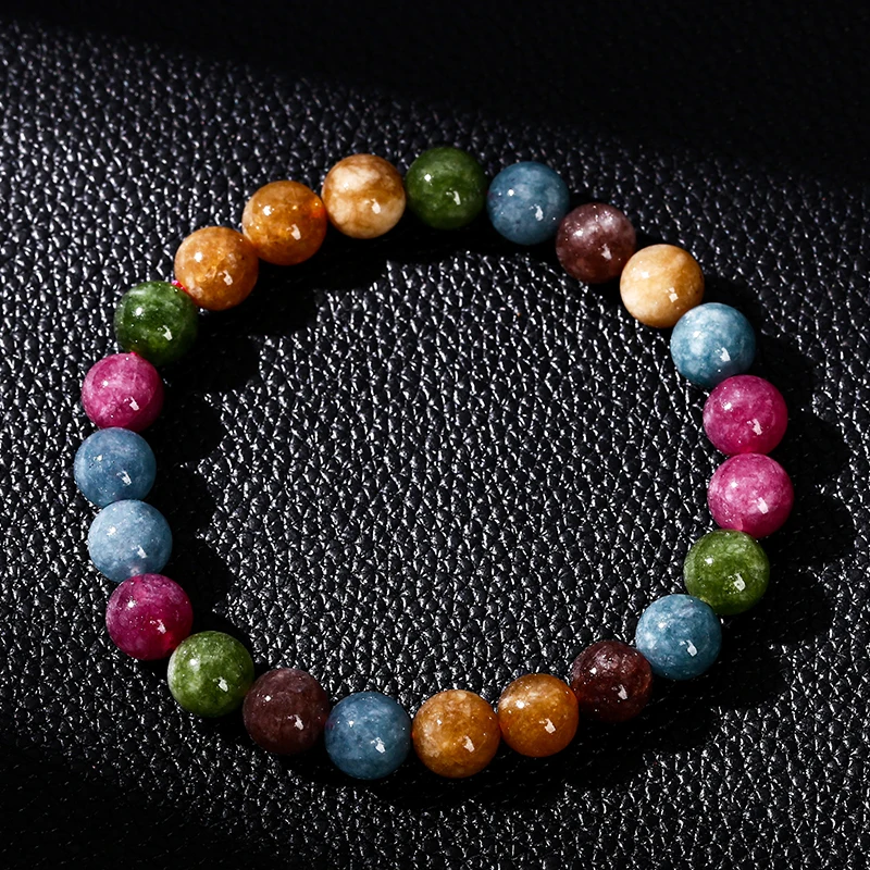 Natural Stone Dyed Tourmaline Chalcedony Strand Bracelet Women Reiki Healing Energy Yoga Elastic Rope Bangles Girls Gifts
