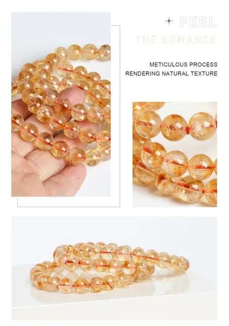 Natural Stone Golden Citrine Beaded Bracelets Men Women Yellow Quartz Reiki Healing Strand Bangles Fashion Wristband Jewelry