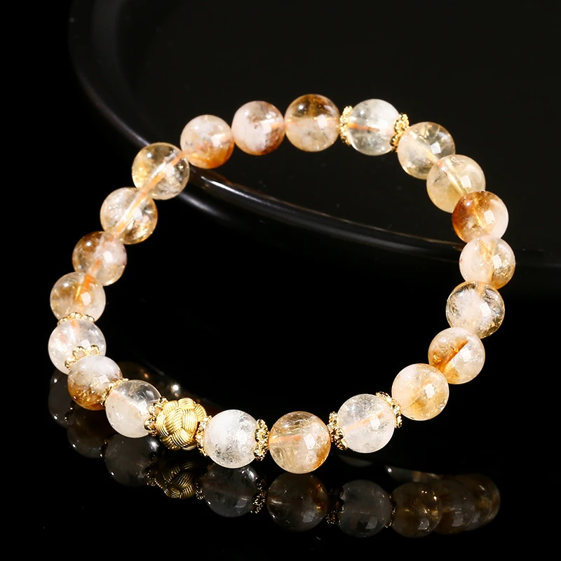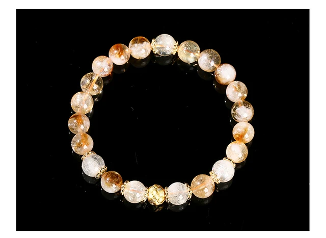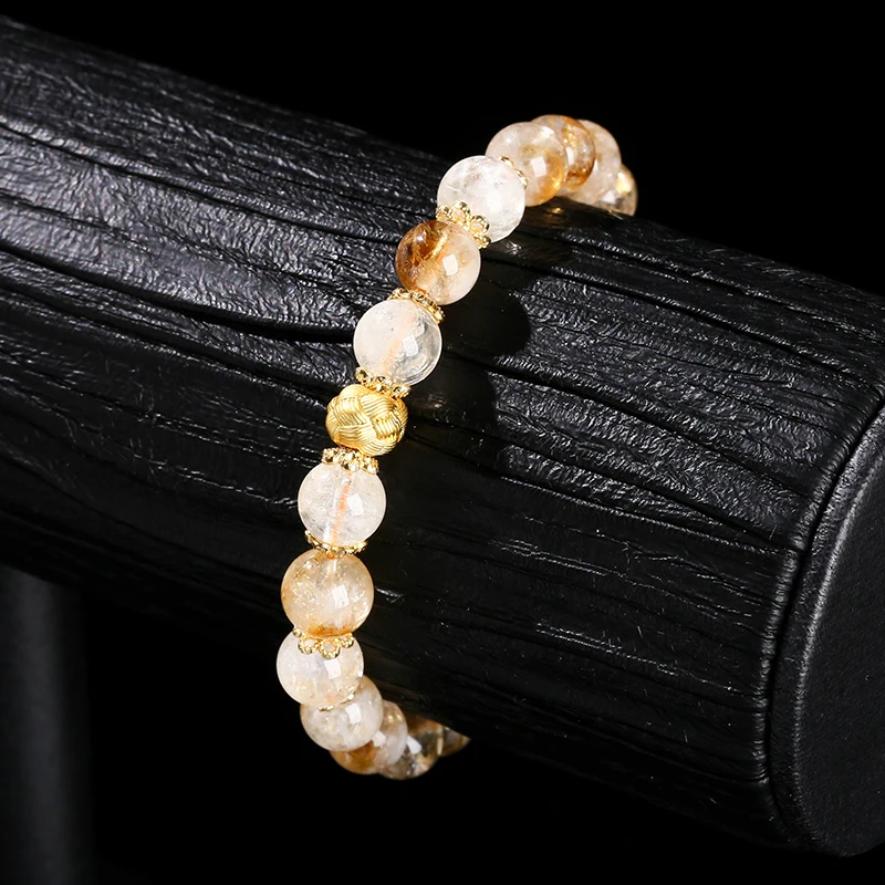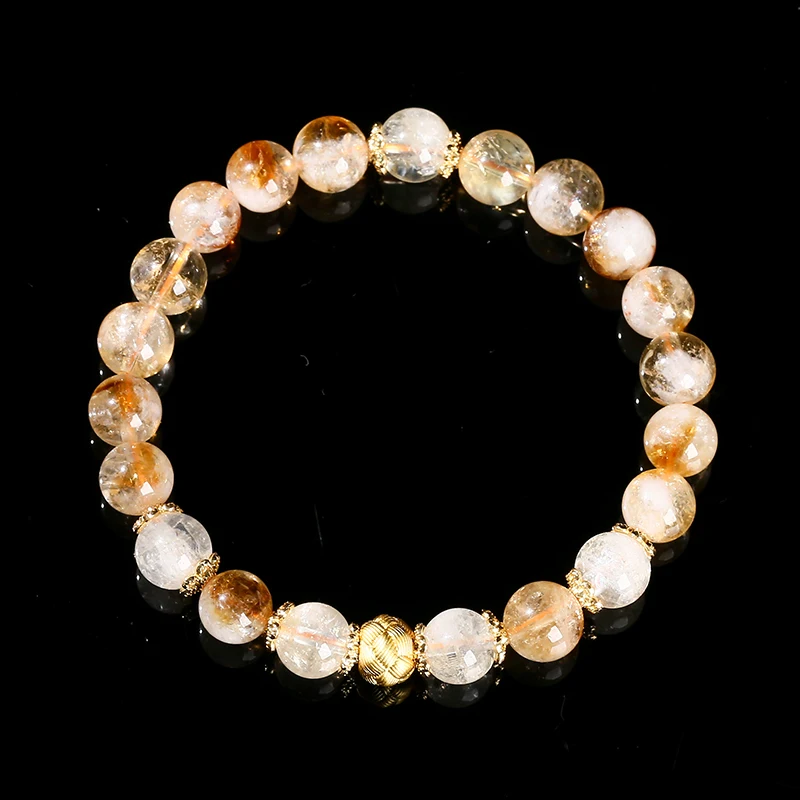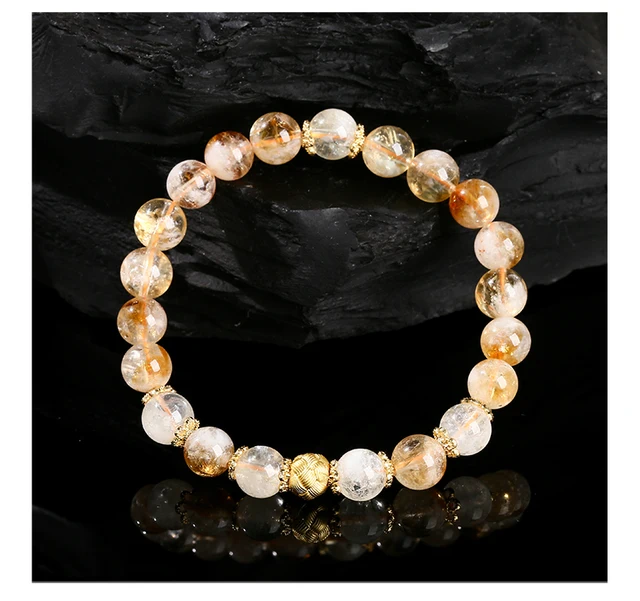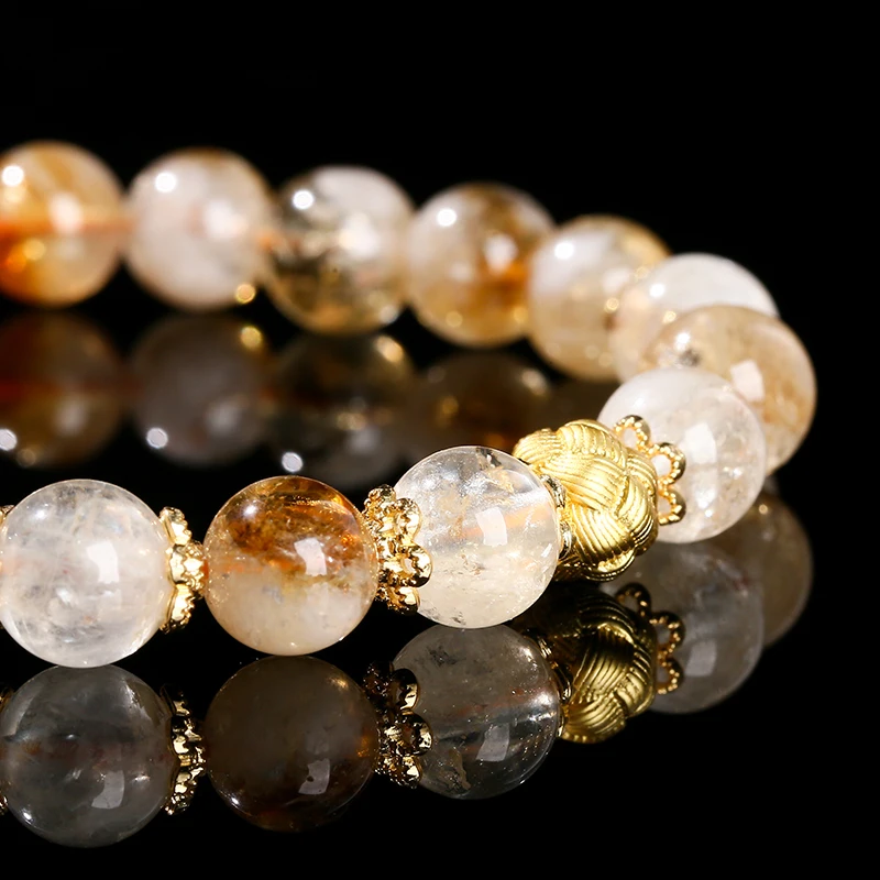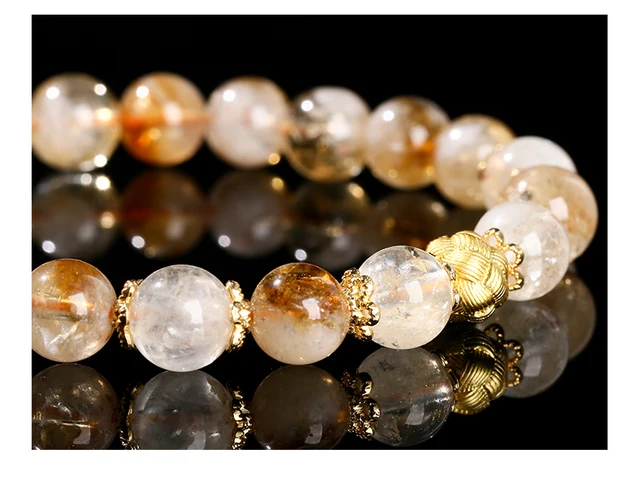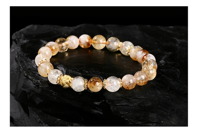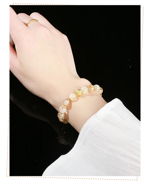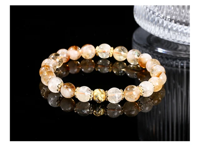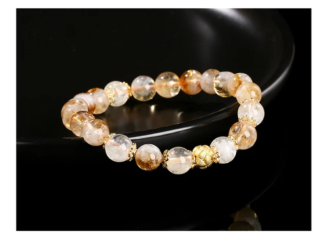 Natural Stone Golden Quartz Wealth Lucky Bracelets Women Luxury Elegant Copper Accessory Crystal Elastic Bracelet Couple Gift