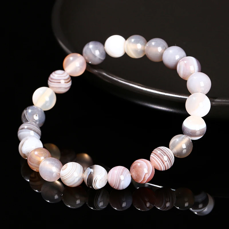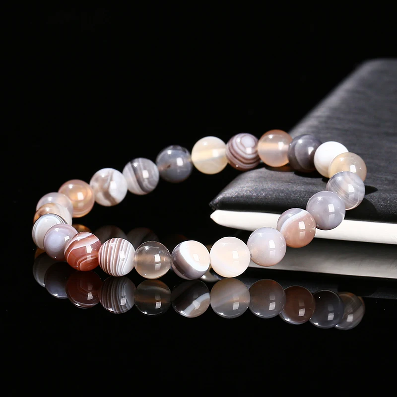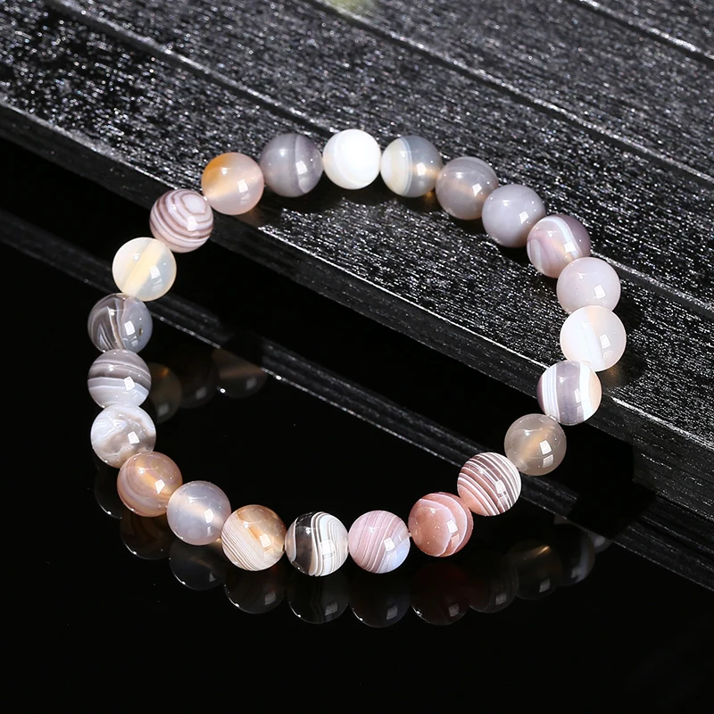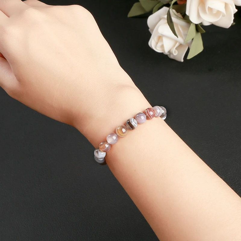 Natural Stone Gray Strips Persian Gulf Agate Bead Bracelets Women Men Fashion Singles Circle Energy Healing Rope Bangles Gift