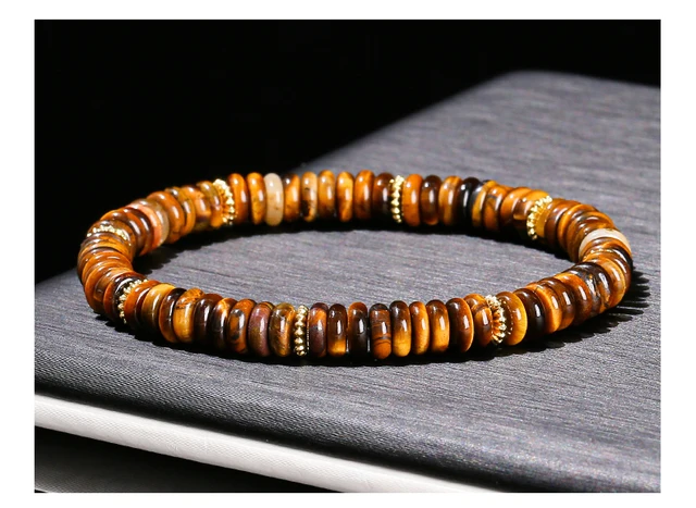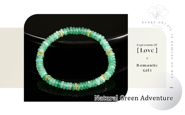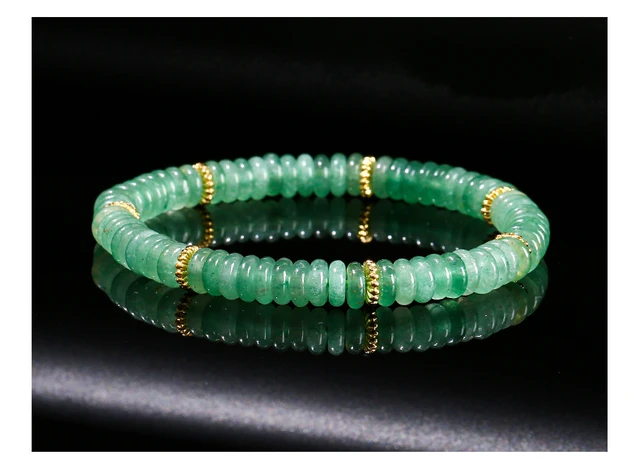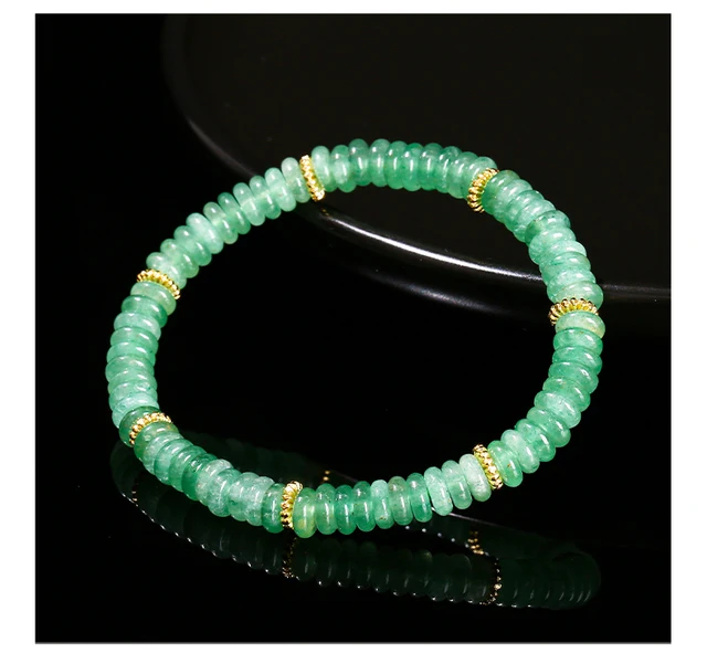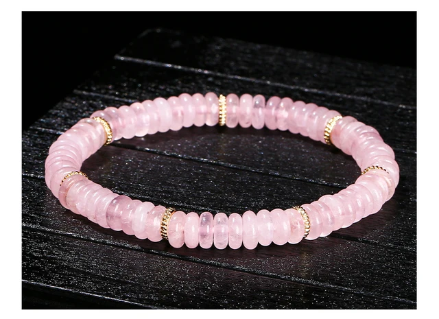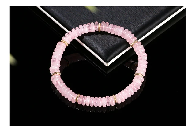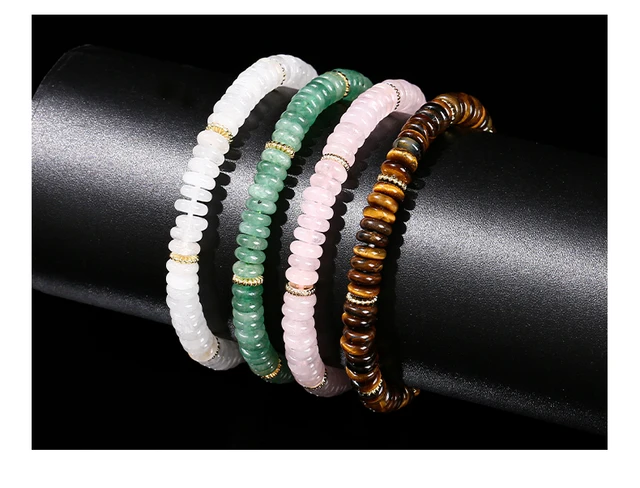 Natural Stone Green Aventurine Pink Quartz Flat Spacer Beads Bracelet Women Men Elastic Bangles Healing Friendship Gift