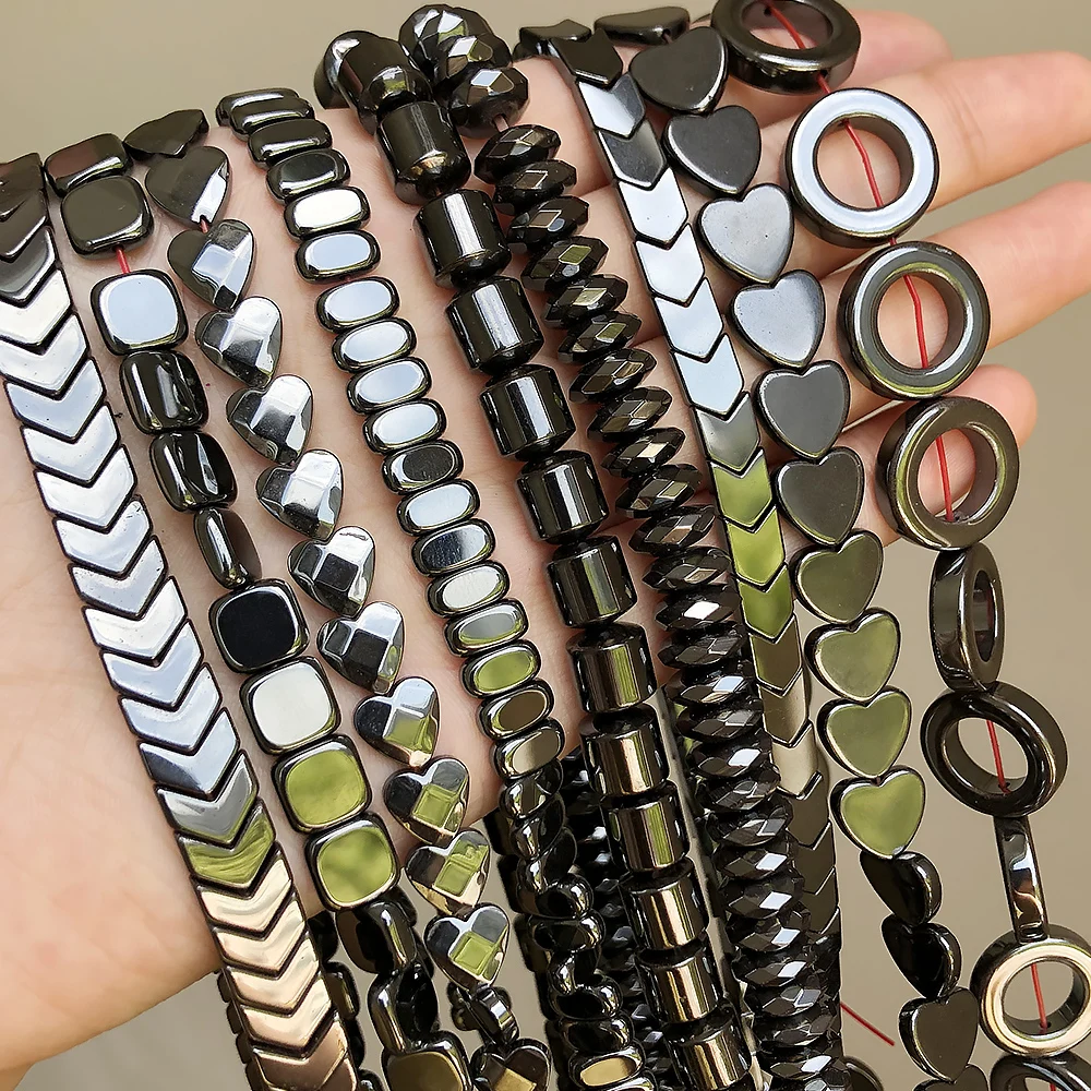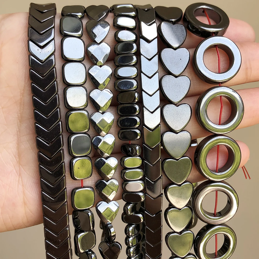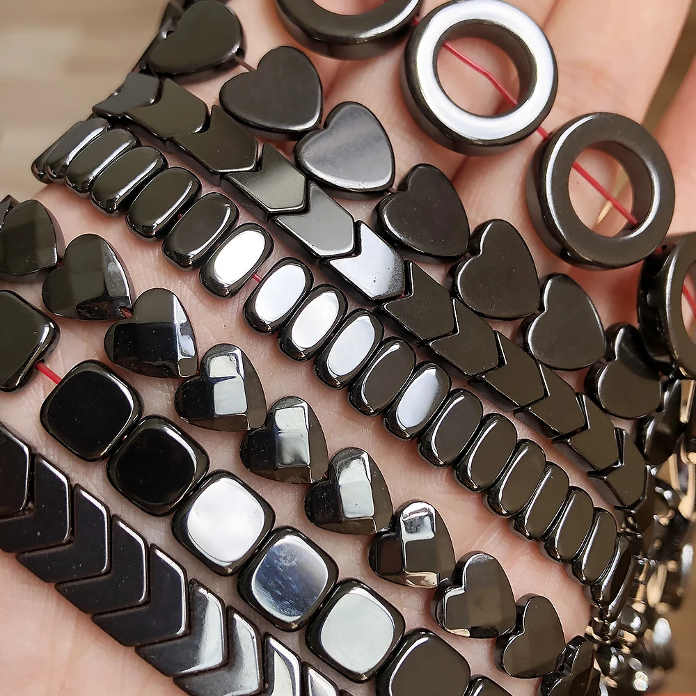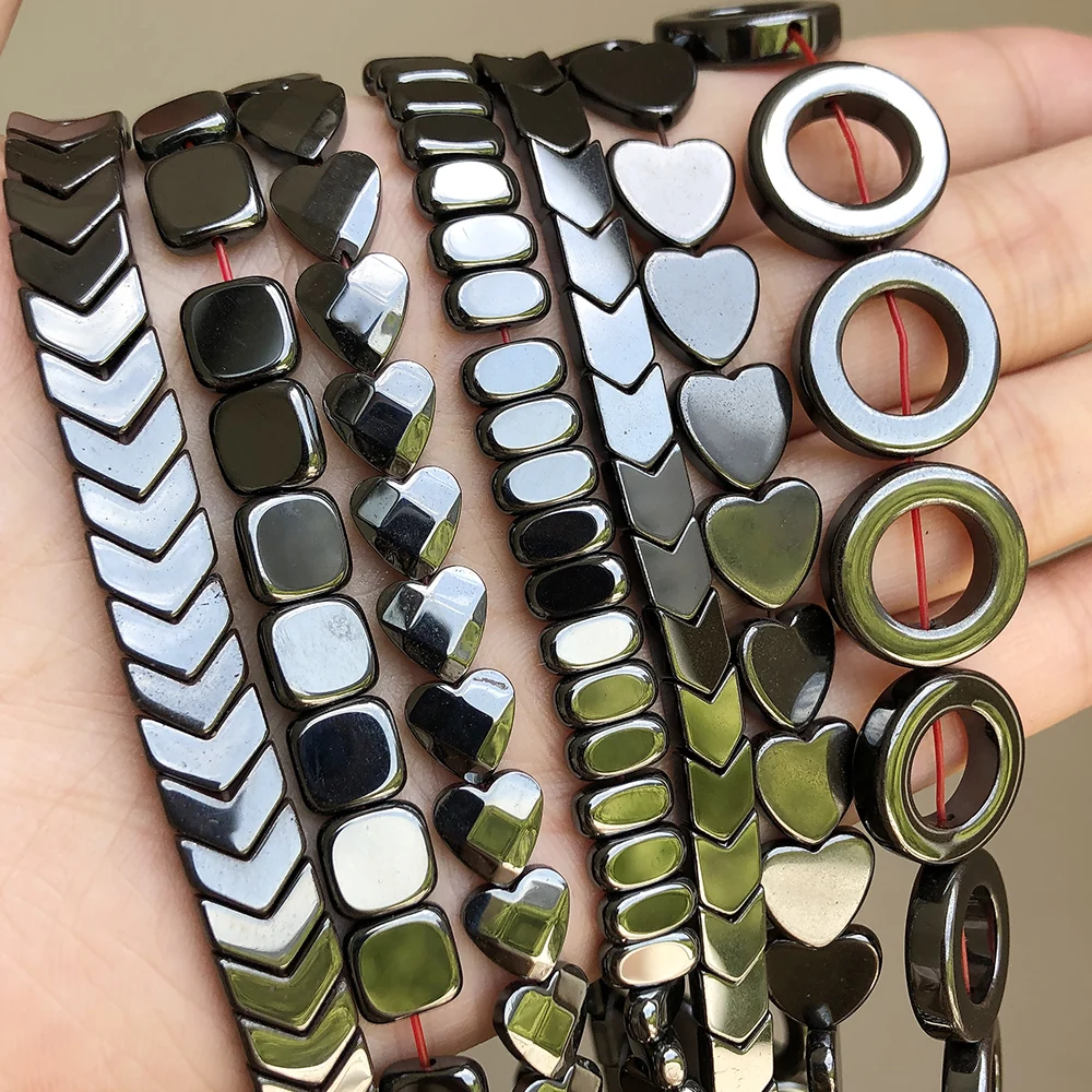 Natural Stone Hematite Beads Flat Round Disc Oval Heart Square Circle Loose Spacer Beads For Necklace Bracelet Making