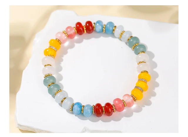 Natural Stone Mixed Color DuoBao Jade Abacus Beaded Lucky Bracelets Women Fashion Handmade Stretch Healing Bracelets Jewelry