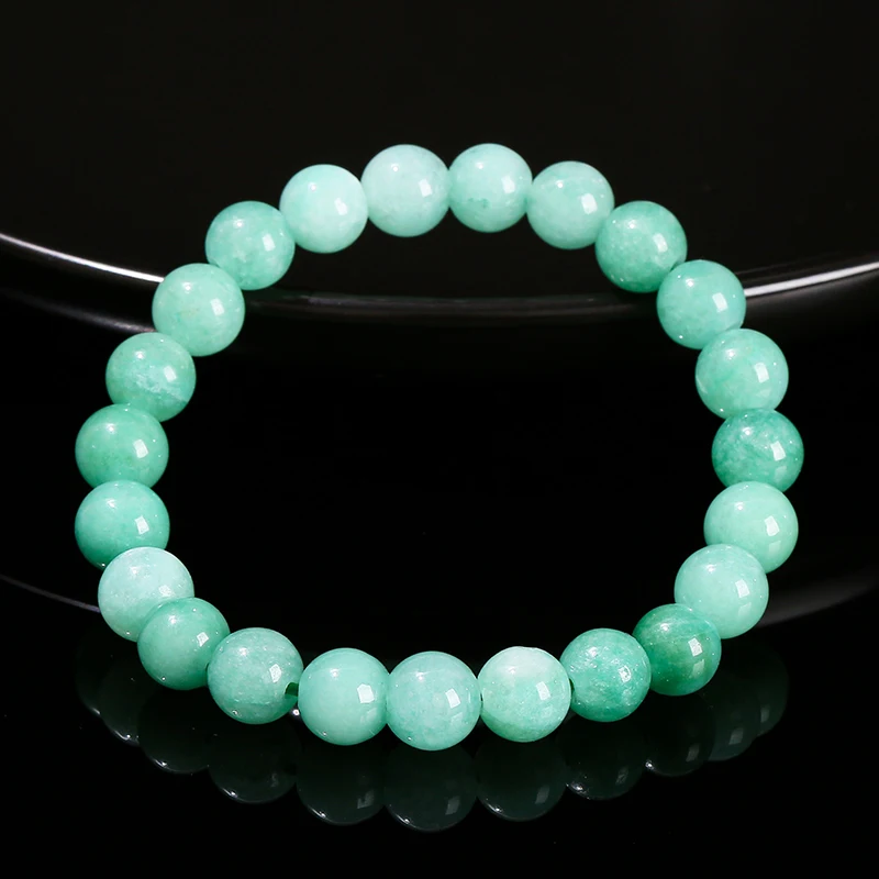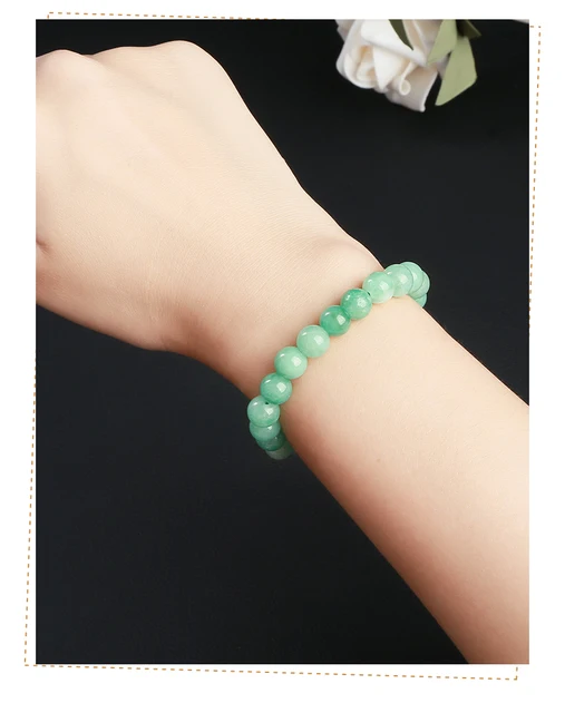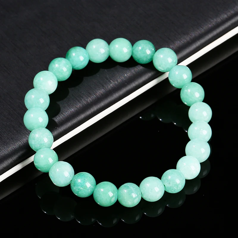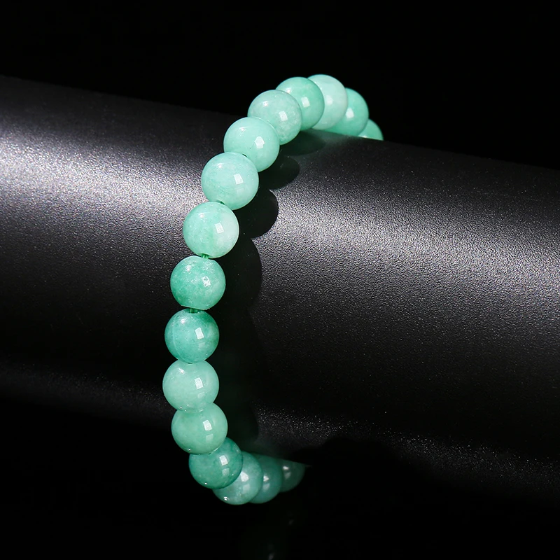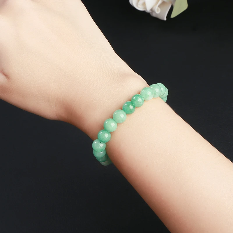 Natural Stone Myanmar Jade Round Bead Strand Bracelet Women Single Circle Stretch Simple Bangles Yoga Meditation Jewelry Gift