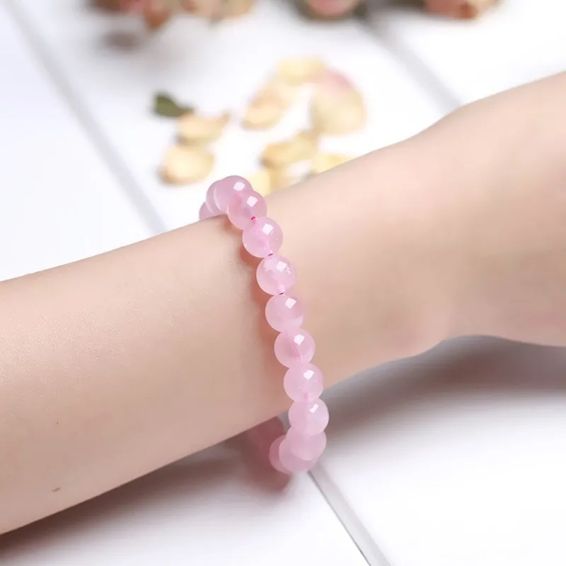 Natural Stone Pink Quartz Crystal Amethyst Fluorite Beaded Bracelets Women Sweet Reiki Healing Energy Strand Bangles Jewelry