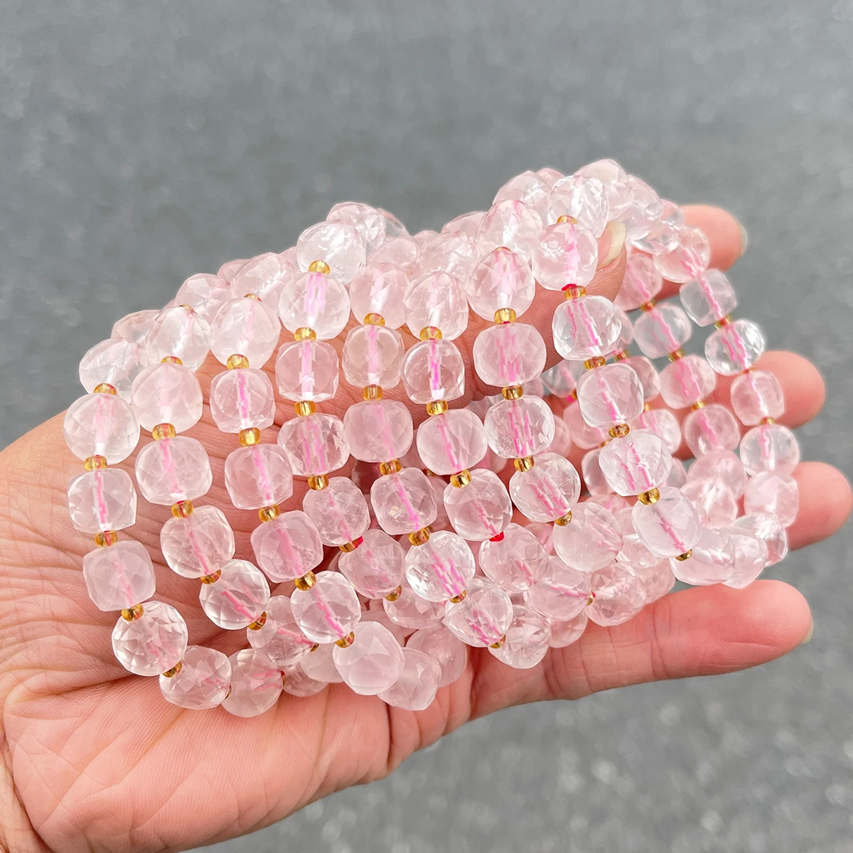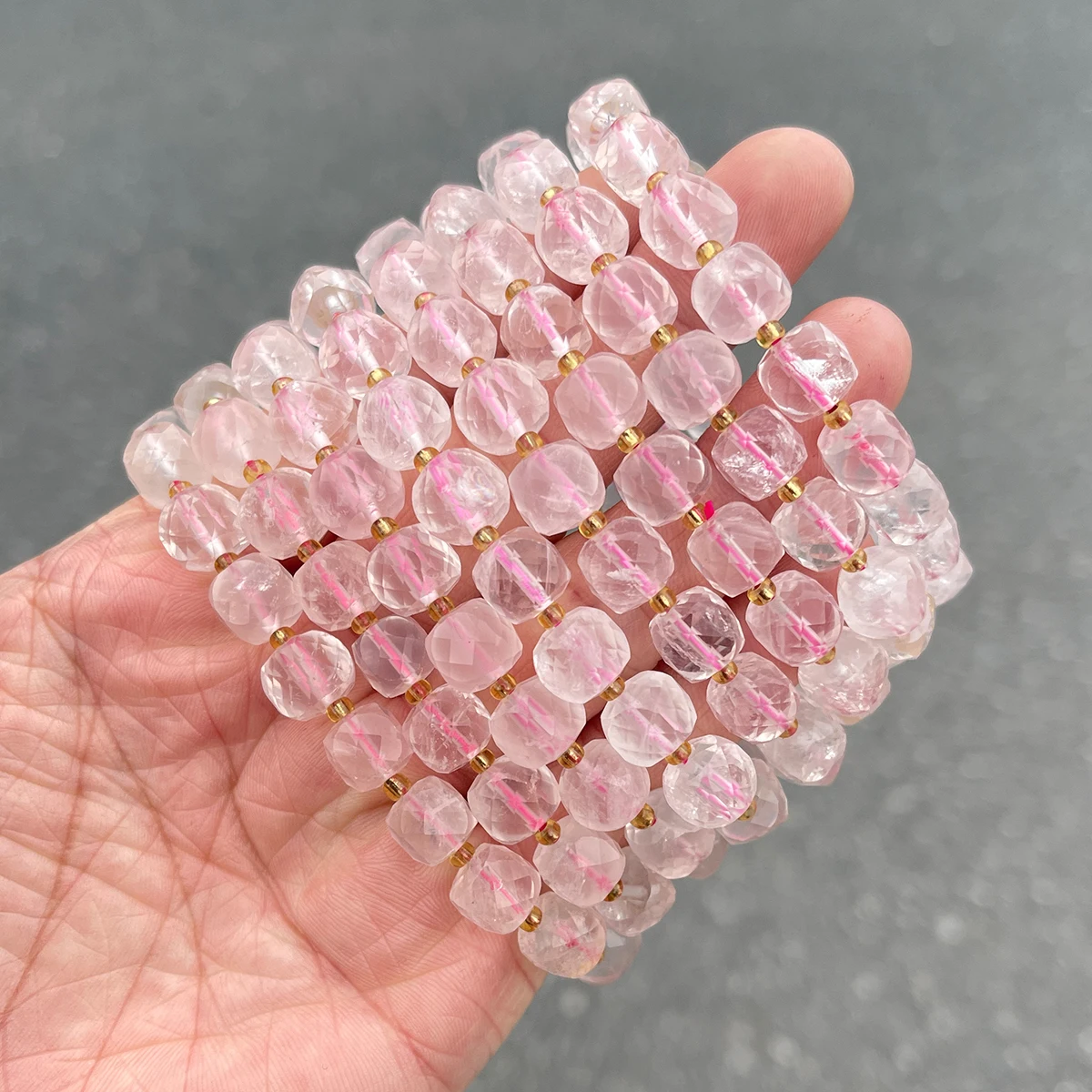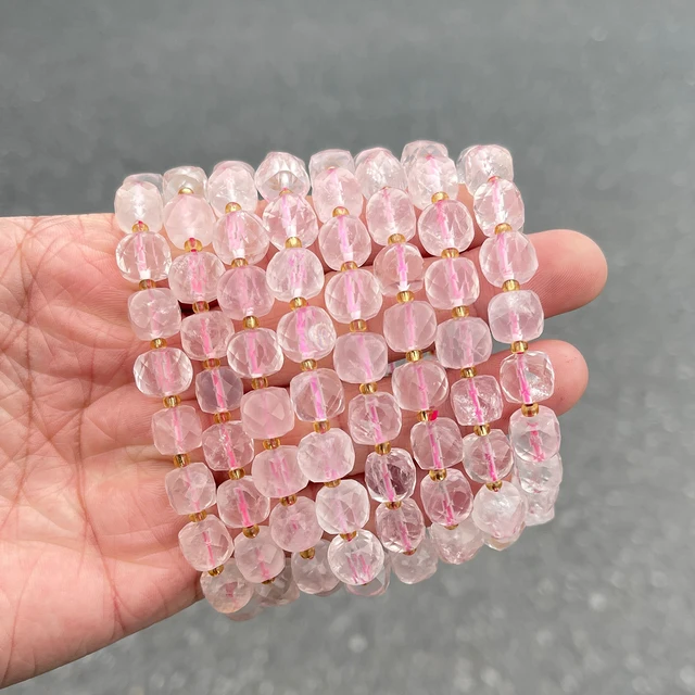 Natural Stone Pink Quartz Faceted Square Strand Bracelets Women Single Circle Healing Bangles Hand Strings Friendship Gift