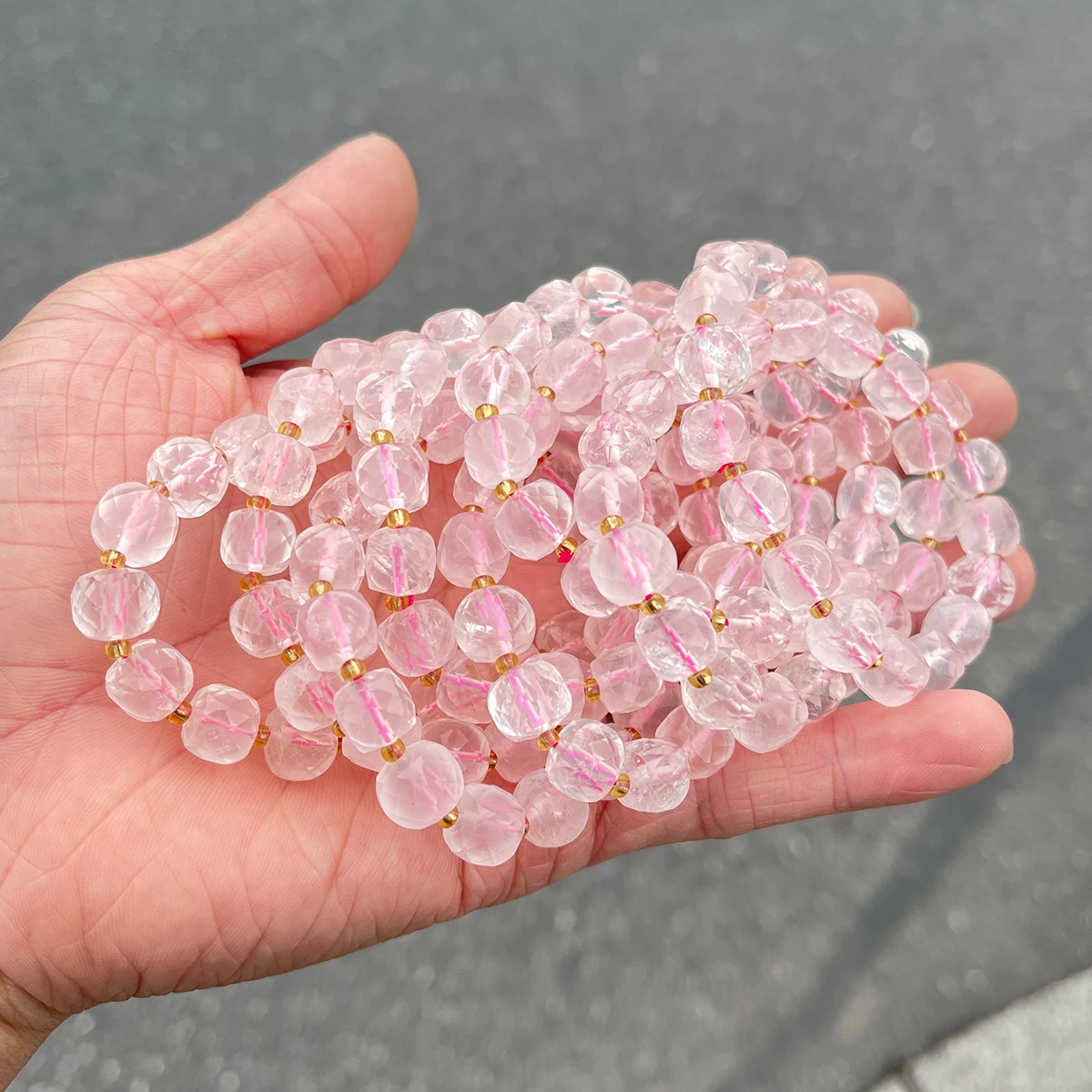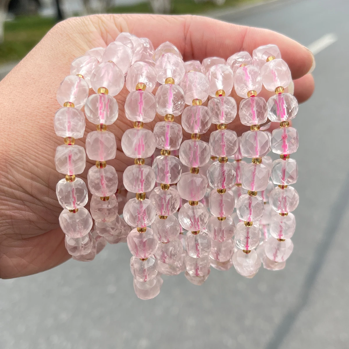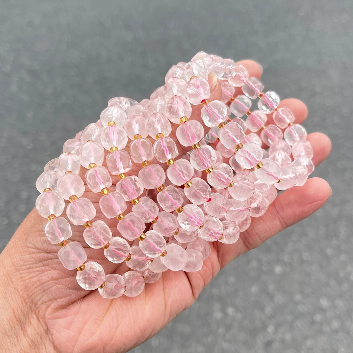 Natural Stone Pink Quartz Faceted Square Strand Bracelets Women Single Circle Healing Bangles Hand Strings Friendship Gift