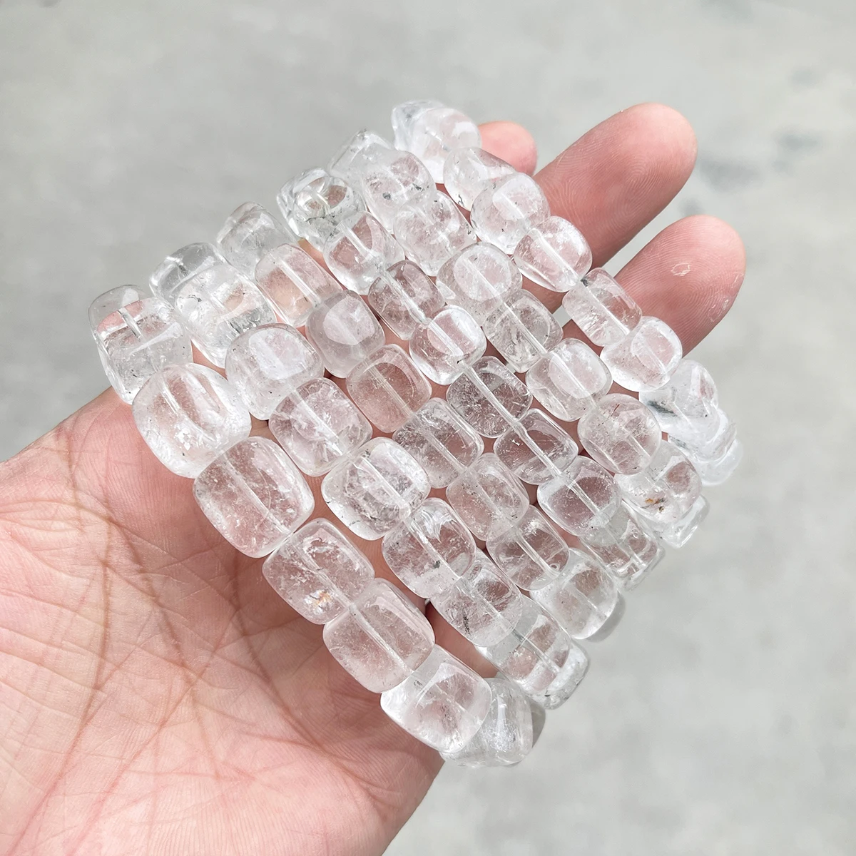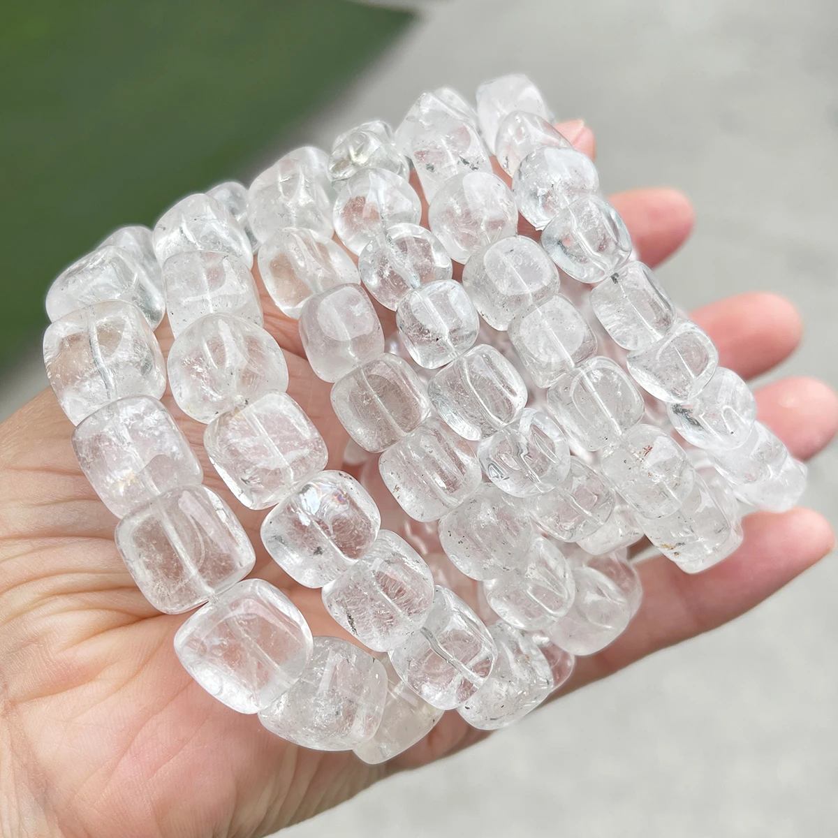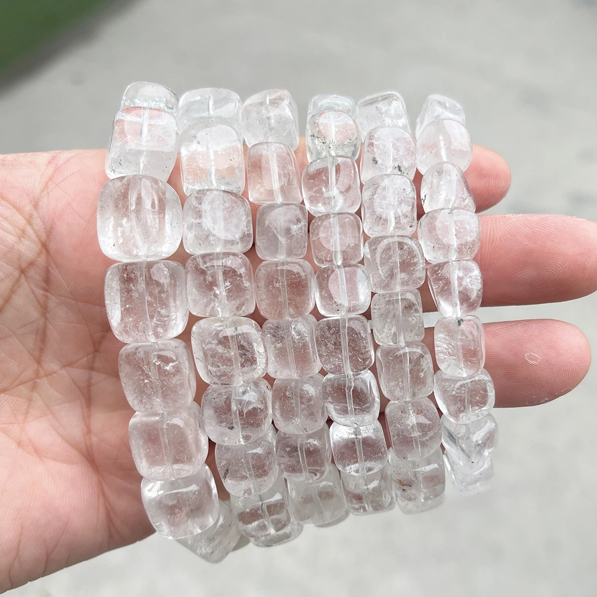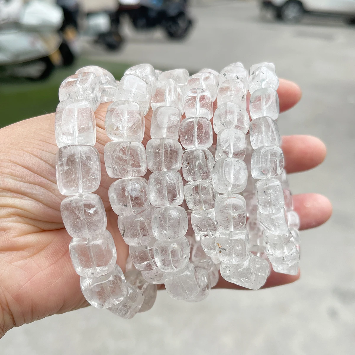 Natural Stone Rock Quartz Irregular Square Bead Bracelet Women Reiki Healing Crystal Stretch Bangles Yoga Jewelry Female