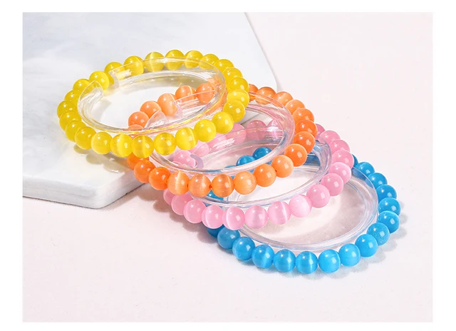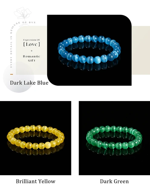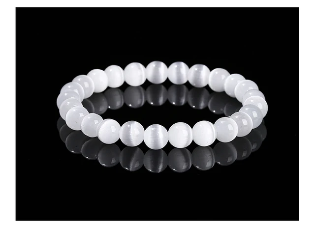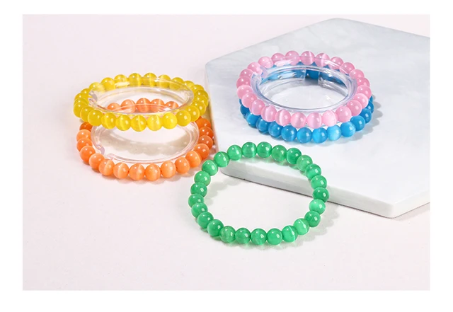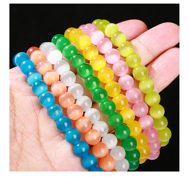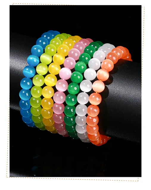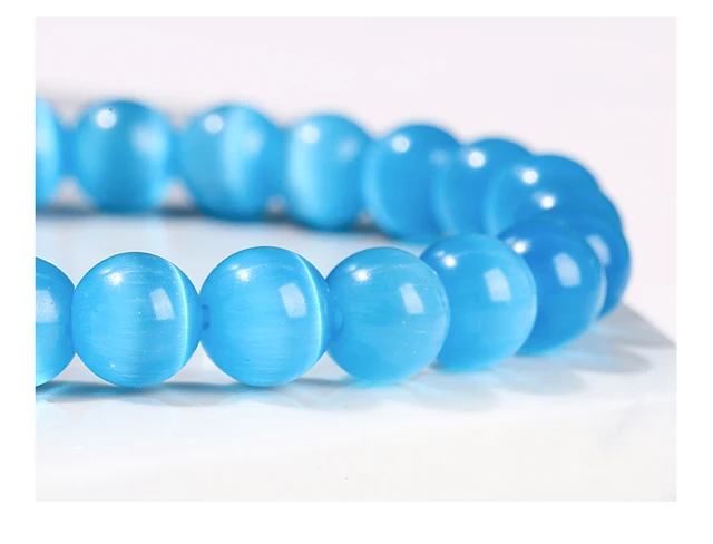 Natural Stone White Blue Yellow Cat Eyes Stone Round Bead Bracelets Women Trendy 6 8 10mm Elastic Rope Bracelet Yoga Jewelry