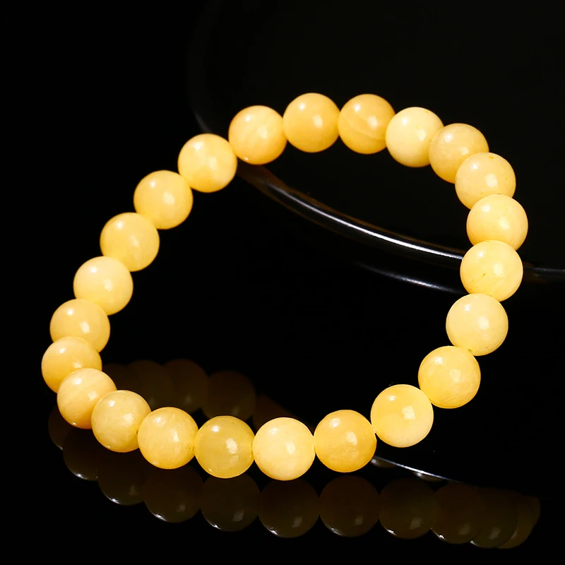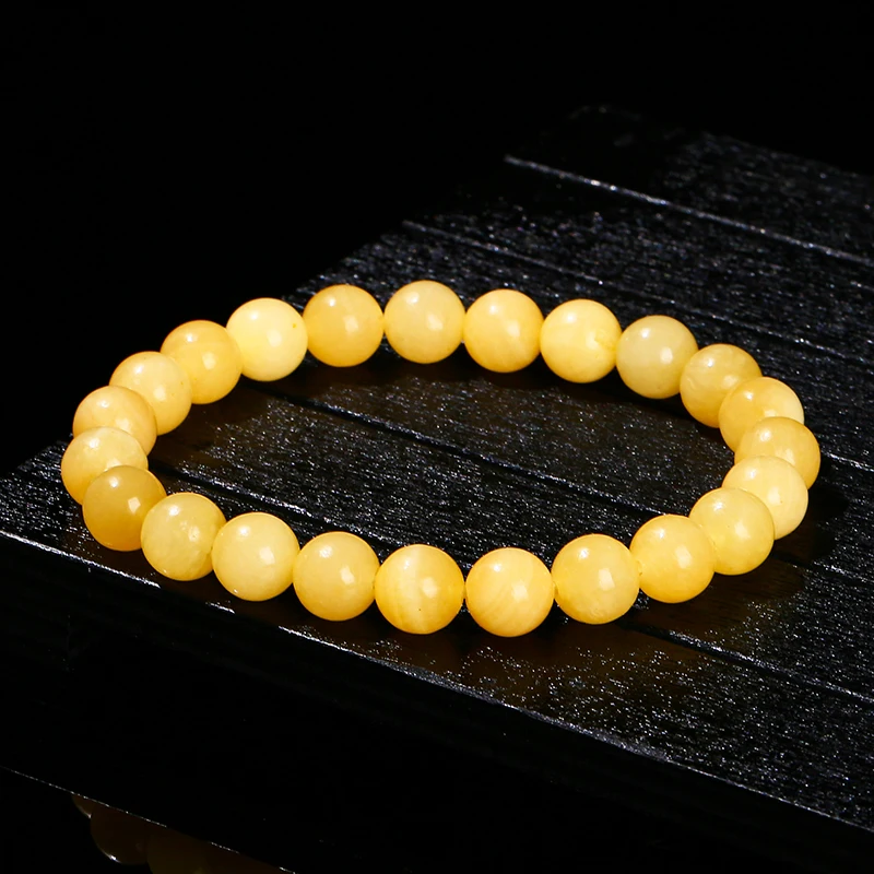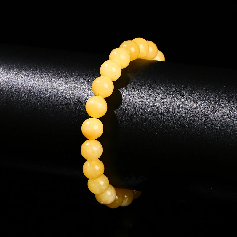 Natural Stone Yellow Jade Round Beaded Bracelet Women Men Fashion Jewelry Stretch Bangles Reiki Healing Jewerly