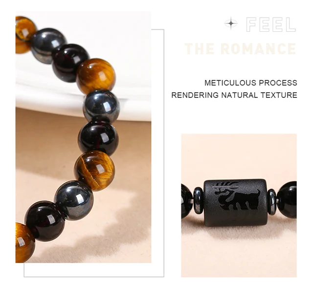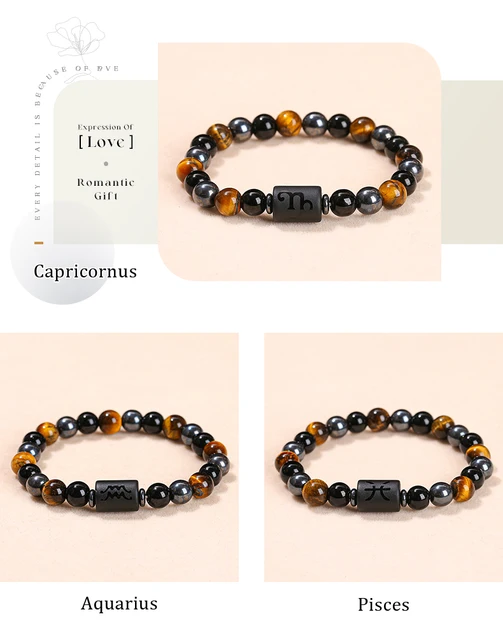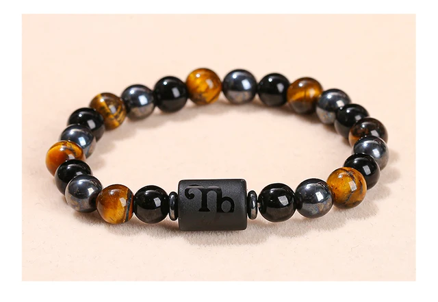 Natural Stone Yellow Tiger Eye Hematite 12 Zodiac Constellation Sign Charm Bracelets Women Men Couple Horoscope Lucky Jewelry Gift