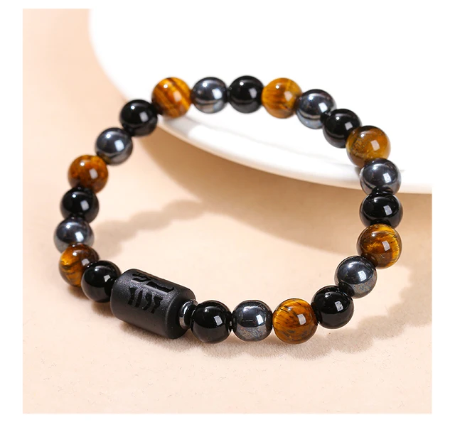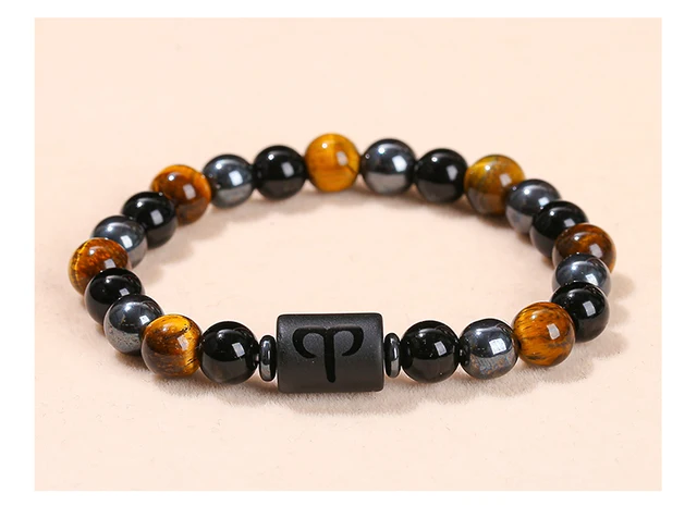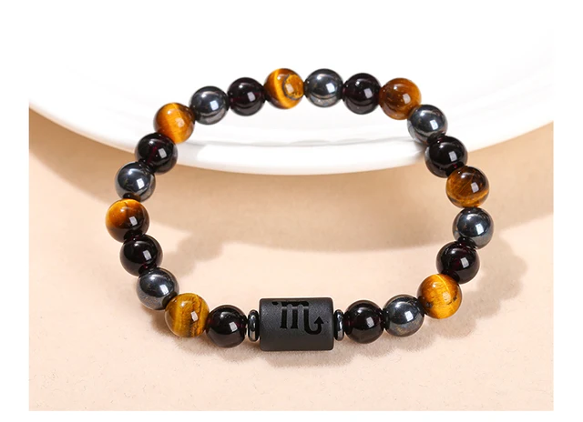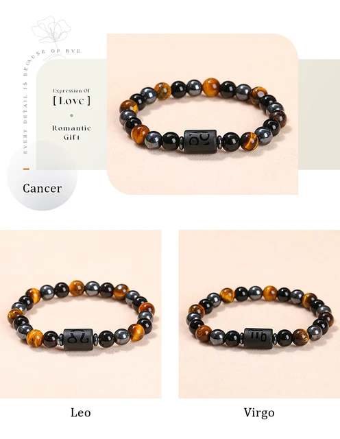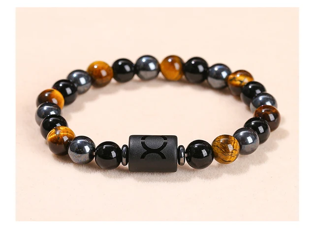 Natural Stone Yellow Tiger Eye Hematite 12 Zodiac Constellation Sign Charm Bracelets Women Men Horoscope Lucky Jewelry Gift