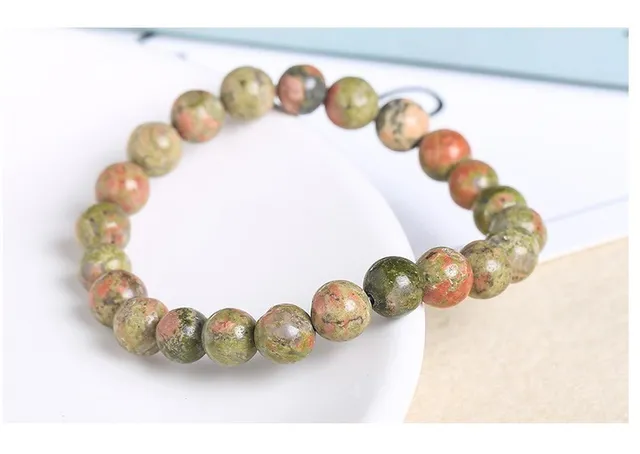 Natural Unakite Jasper Stone Crystal Quartz Beads Bracelets For Women Round Shape Bracelet Jewelry Vintage Jewelry