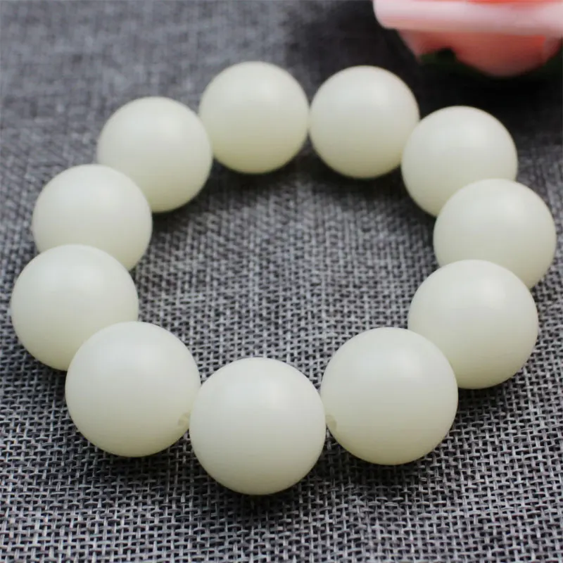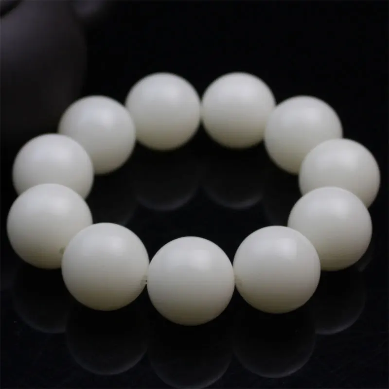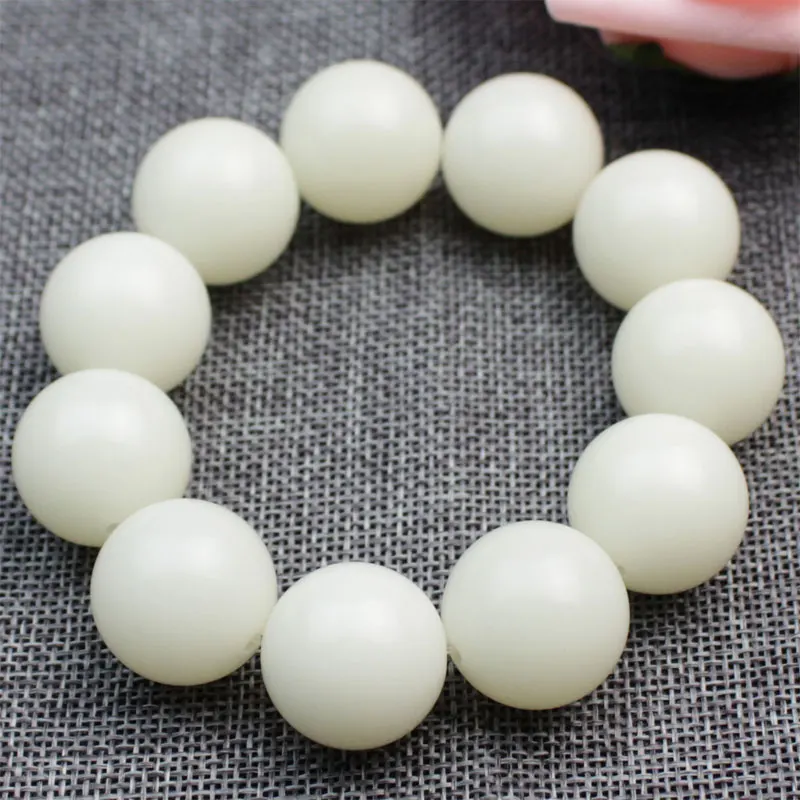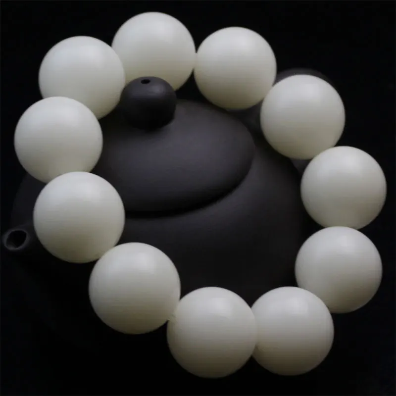 Natural White Bodhi Root Bracelet Round Beads 22MM Jade Seed Original Polish Wenwan Yoga Spiritual Jewelry