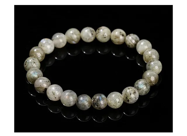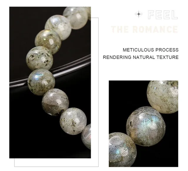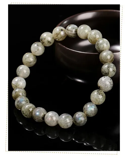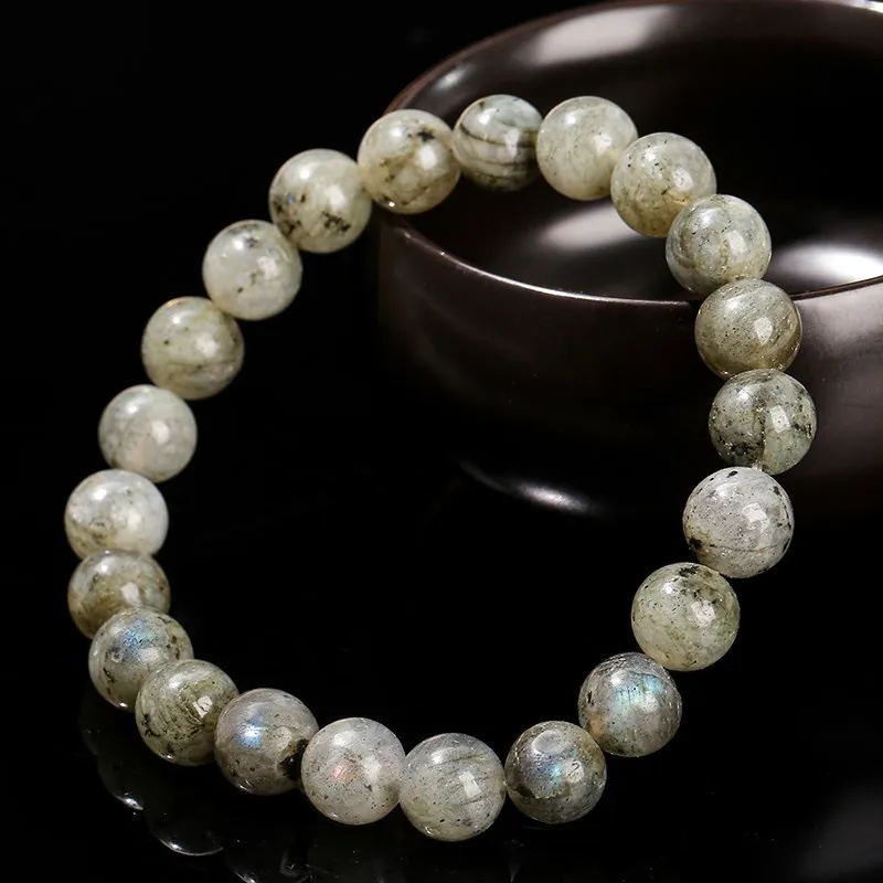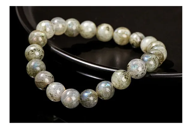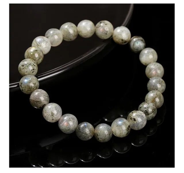 Natural White Spectrolite Stone Round Bead Strand Bracelet for Women Men Charm Labradorite Irisation Stretch Bangles Couple Gift