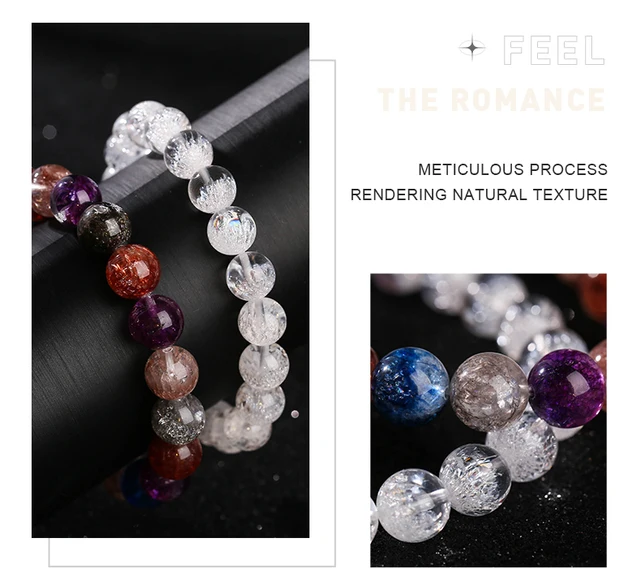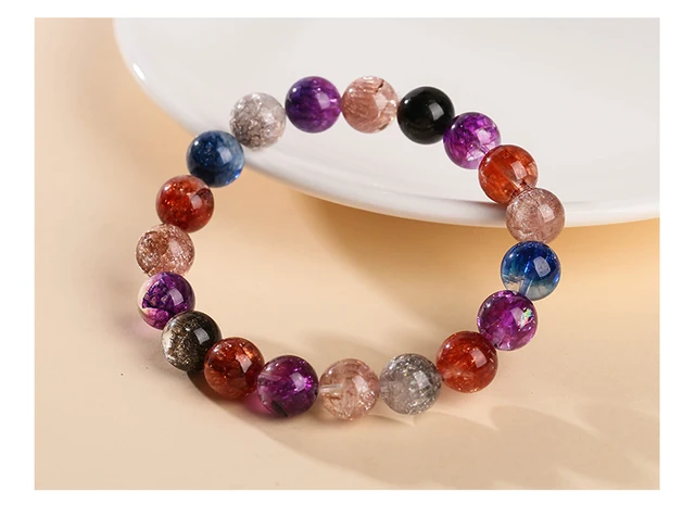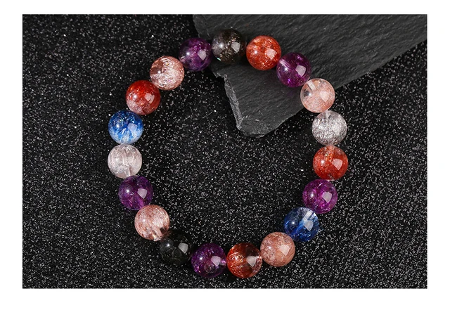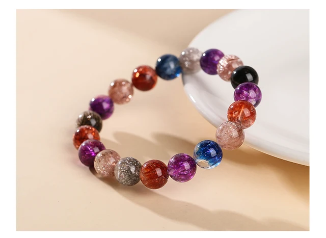 Natural White Super Seven Treasure Basin Lucky Bracelets Women Charm Crystal Bead Stretch Bangles Healing Gifts