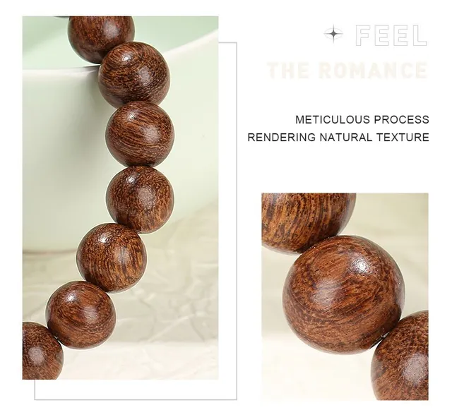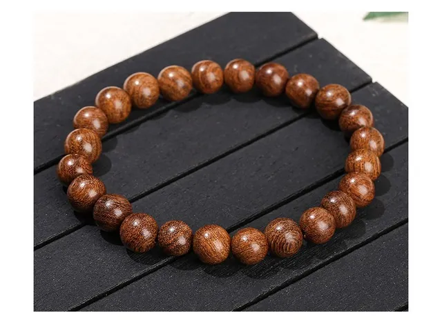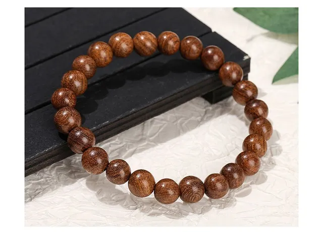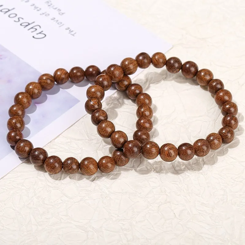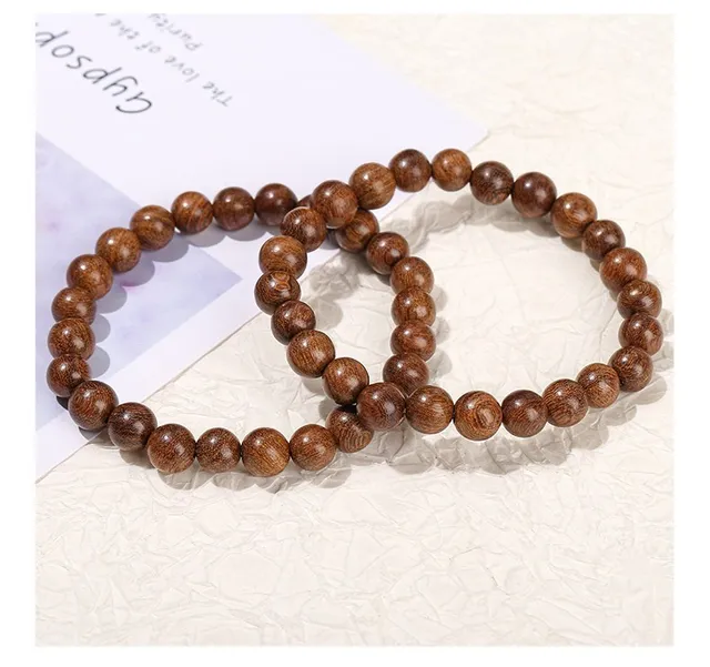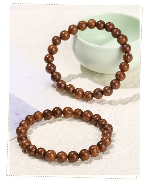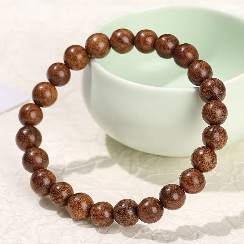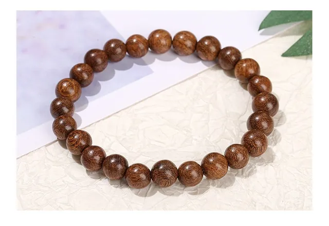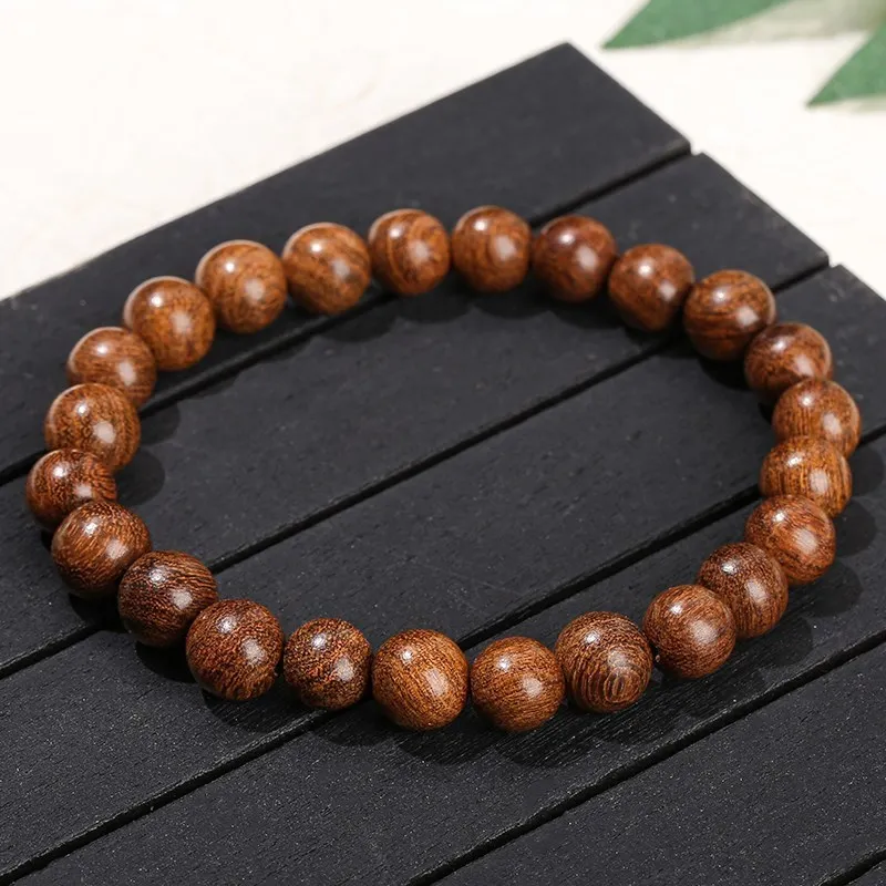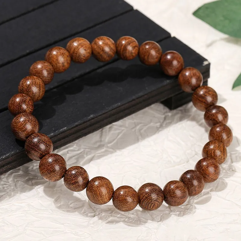 Natural Wooden Bead Golden Silk Sandalwood Prayer Bracelet Women Men Vintage Handmade Stretch Yoga Meditation Bangles Jewelry