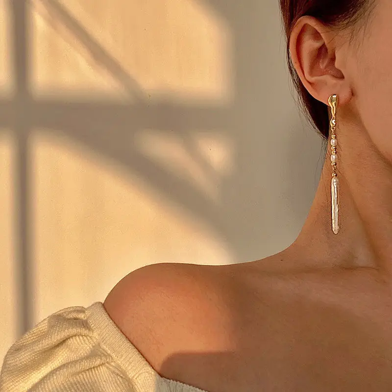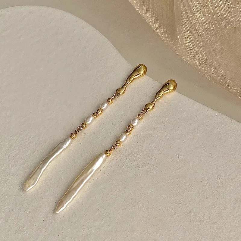New Arrival 100% Natural Freshwater Pearl 14K Gold Filled Ladies Tassels Stud Earrings Jewelry For Women Anti Allergy