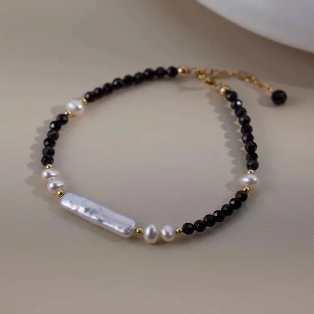 New Arrival Elegant Natural Baroque Freshwater Pearl & Black Crystal 14K Gold Filled Female Jewelry Set For Necklace Bracelet