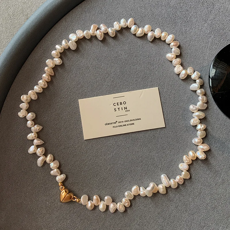 New Arrival Romantic Love Heart Irregular Natural Baroque Freshwater Pearl 14K Gold Filled Ladies Chains Necklace Jewelry Gifts