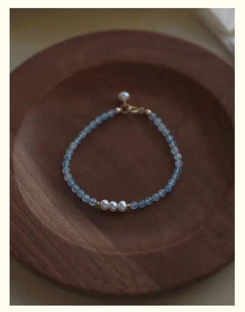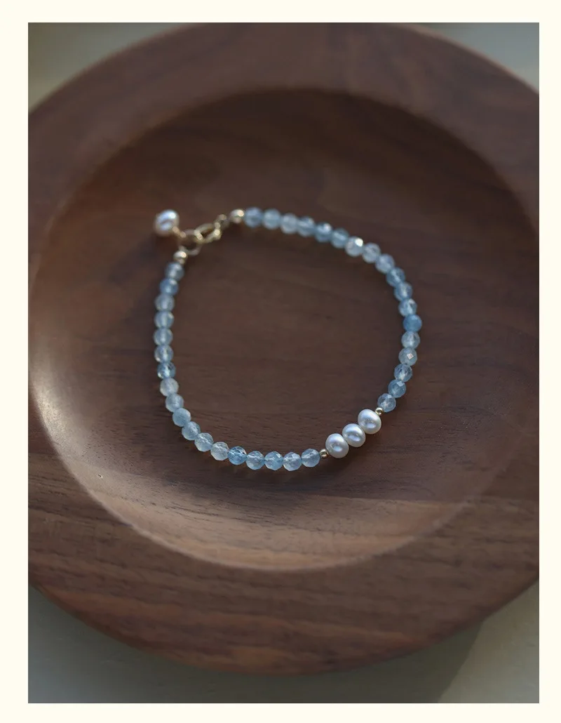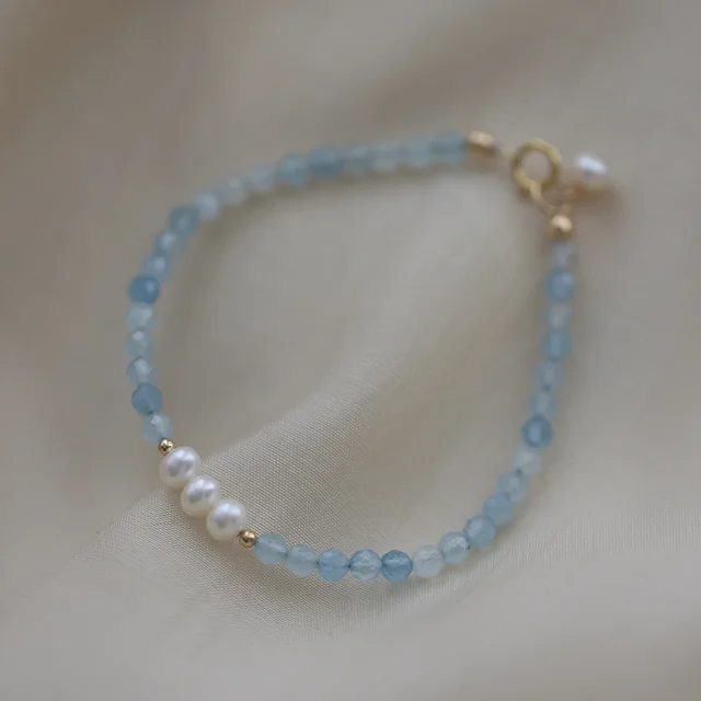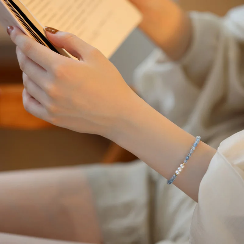 New Arrival Trendy 100% Natural Freshwater Pearl Blue Crystal 14K Gold Filled Ladies Beads Chain Bracelet Jewelry For Women Gift