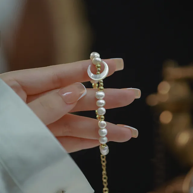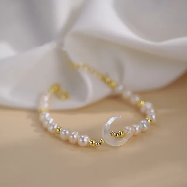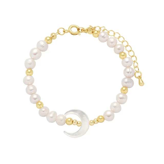 New Arrival Trendy Moon Design Natural Freshwater Pearl 14K Gold Filled Ladies Bracelet Jewelry For Women Birthday Gifts
