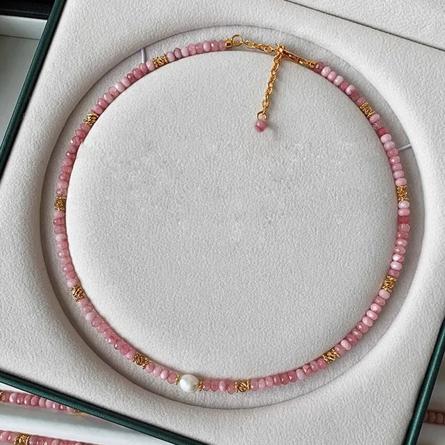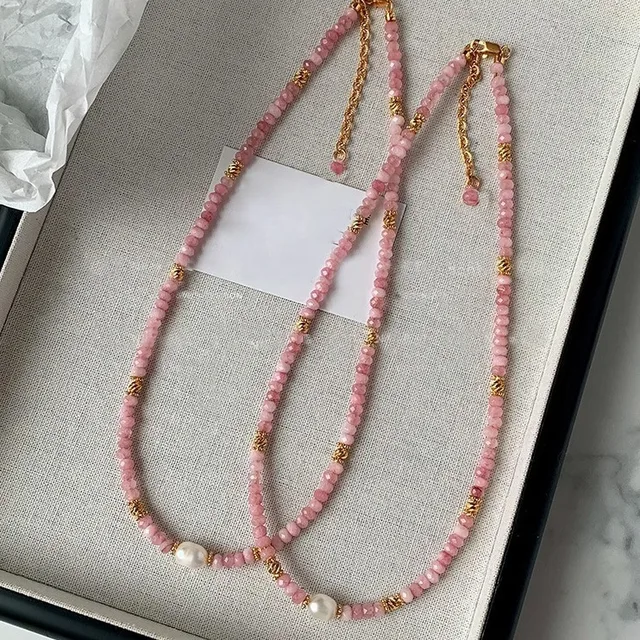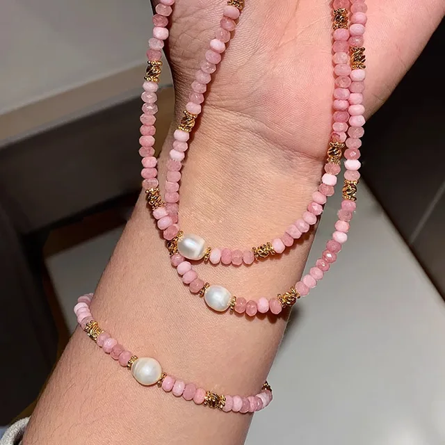 New Arrival Trendy Pink Crystal & Natural Freshwater Pearl 14K Gold Filled Female Jewelry Set For Women Necklace Bracelet Gifts