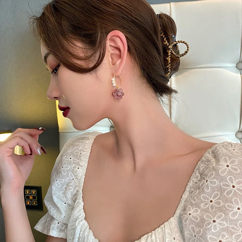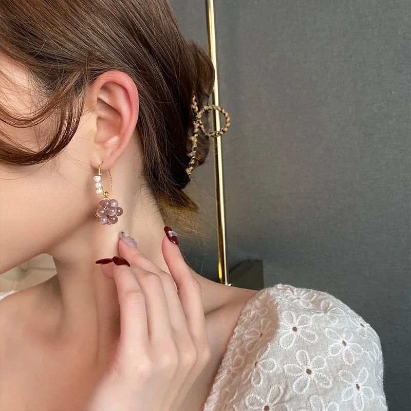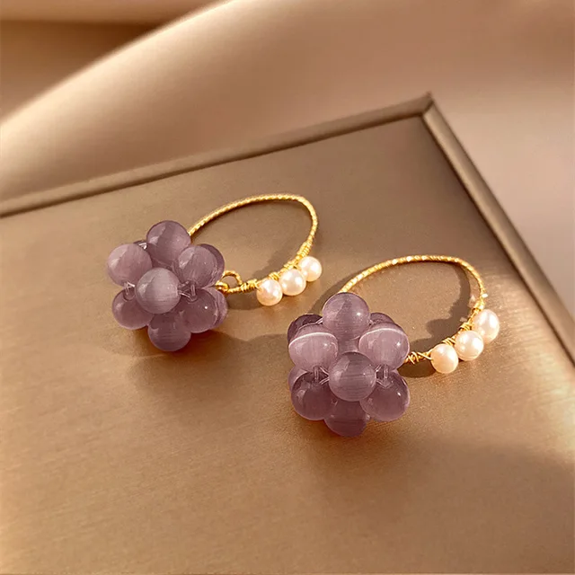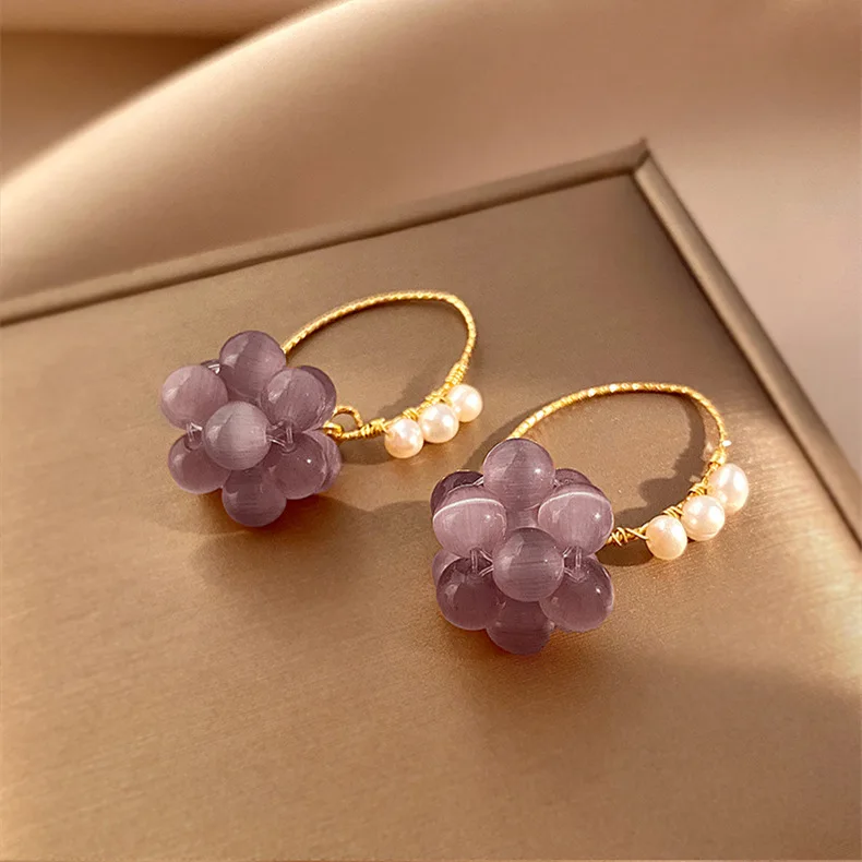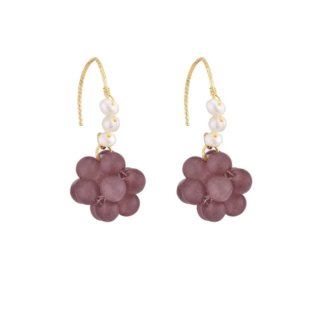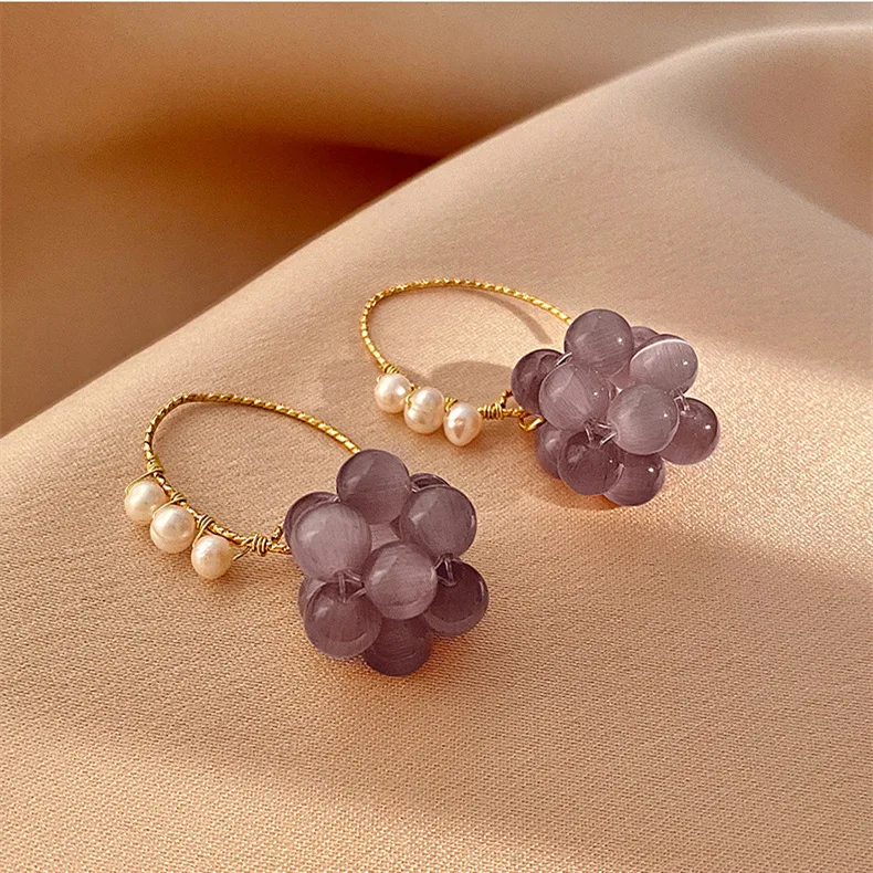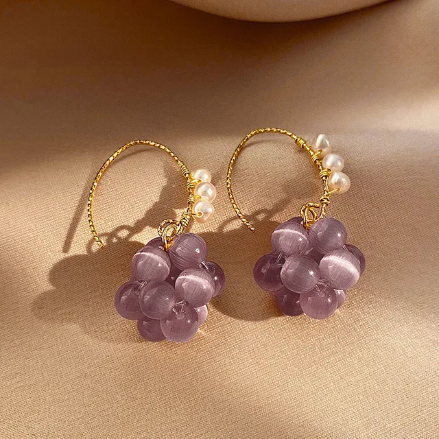 Original Grape Design Purple Opal & Freshwater Pearl 14K Gold Filled Female Drop Earrings Promotion Jewelry For Women No Fade