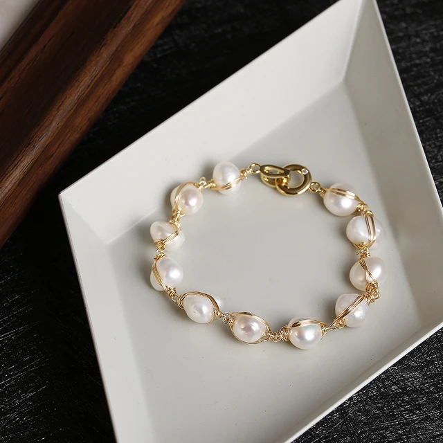 Original Handmade 14K Gold Filled Baroque Natural Freshwater Pearl Ladies Bracelet Promotion Jewelry For Women Birthday Gift