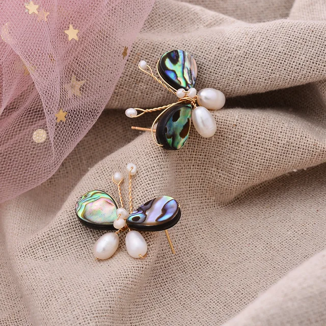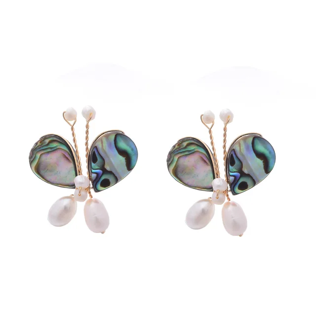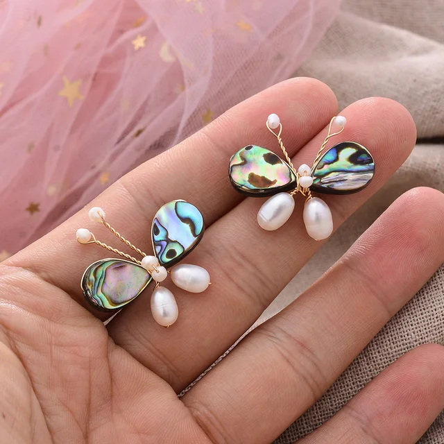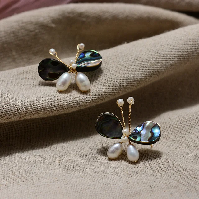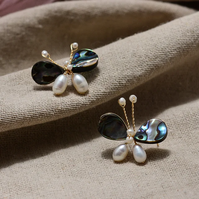 Original Handmade 14K Gold Filled Natural Freshwater Pearl Sweet Butterfly Animal Ladies Stud Earrings Luxury Jewelry Gift
