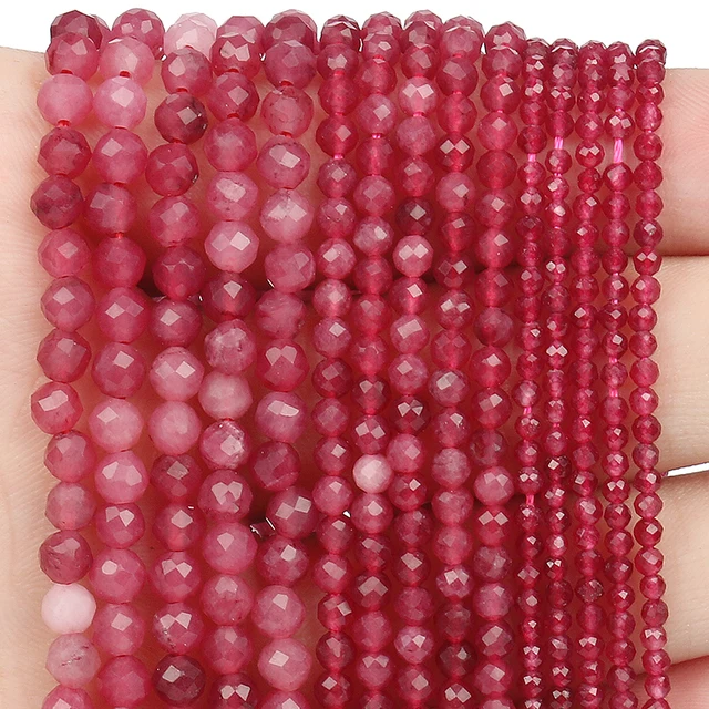 Name:Pink Red Tiny Stone Beads 2mm 3mm 4mm Faceted Pink Opal Garnet Rubine Tourmaline Loose Spacer Beads Diy Bracelet Jewelry Making