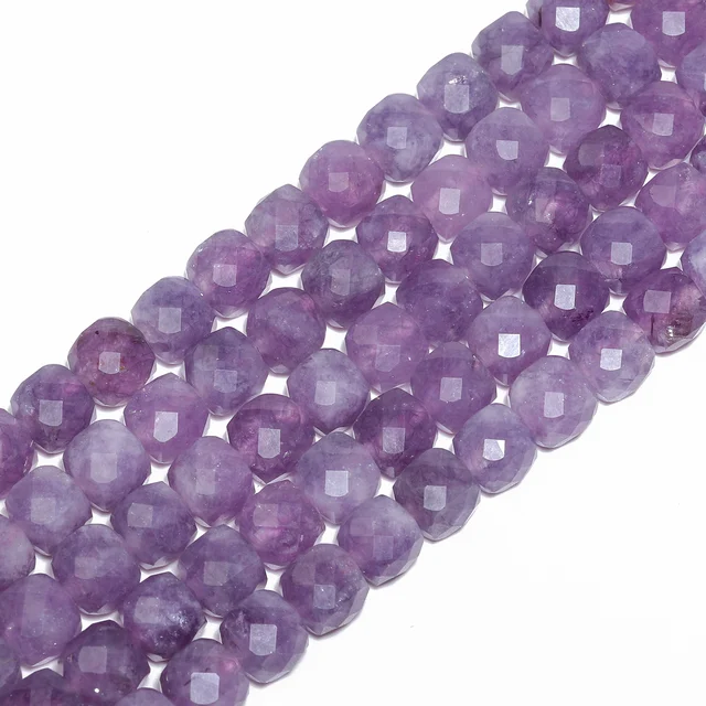 Purple Series Beads 7-8mm Faceted Cube Beads 20-22pcs Kunzite Lavender Garnet Amethyst Beads for Jewelry Making Accessories