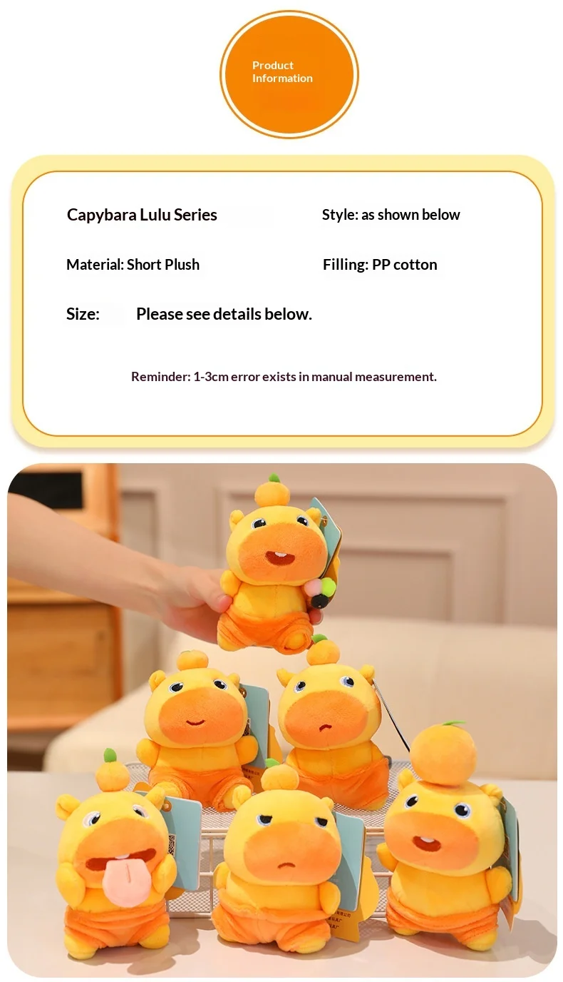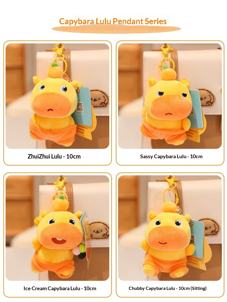 Stuffed Animal Capybara Lulu Keychain Car Keychain Bag Charm Plush Capybara Doll 10cm Hanging Ornament Kapibala Pendants Gifts
