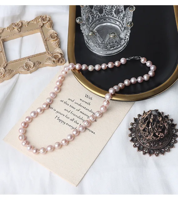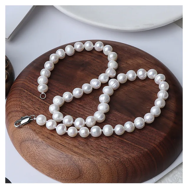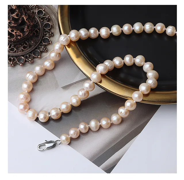 Three Colors 8-9mm Natural Freshwater Pearl Necklace without Nuclear 45cm Hand Knotted Promotional in Stock Wholes