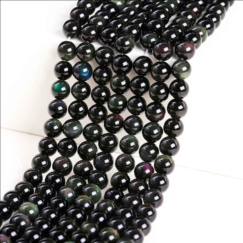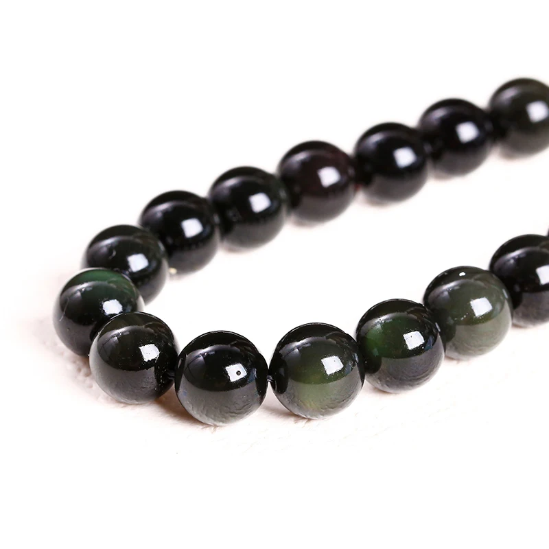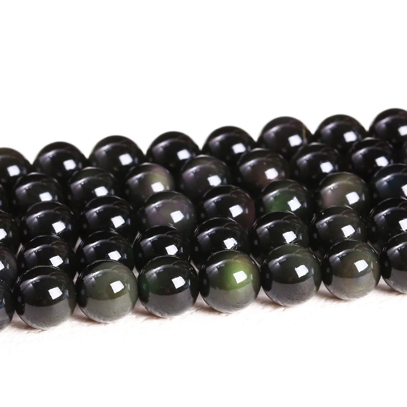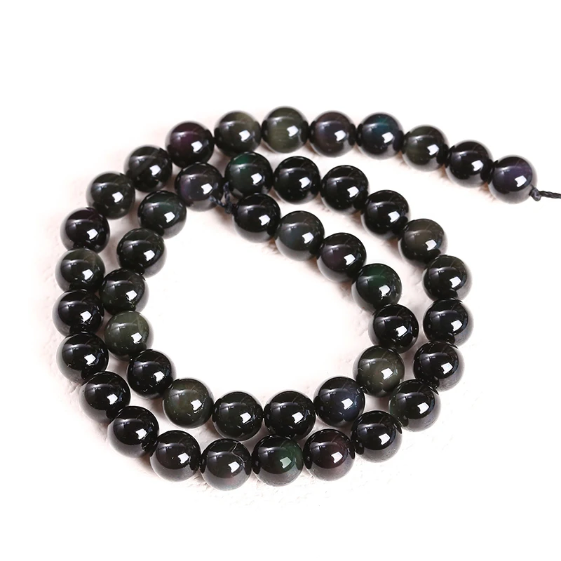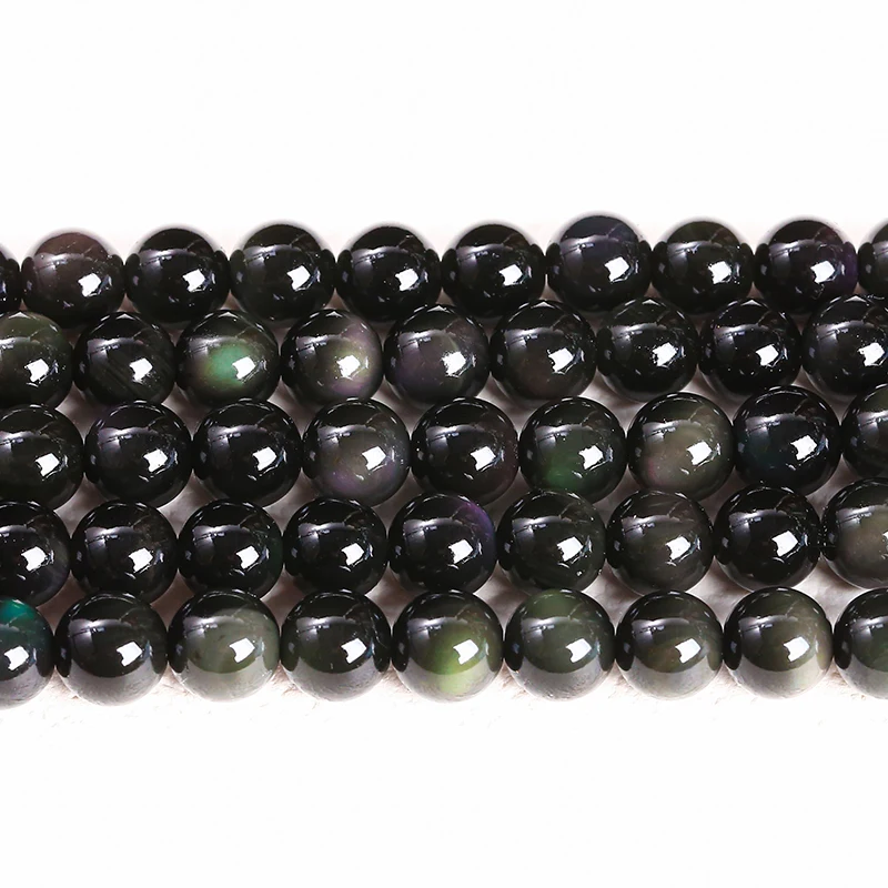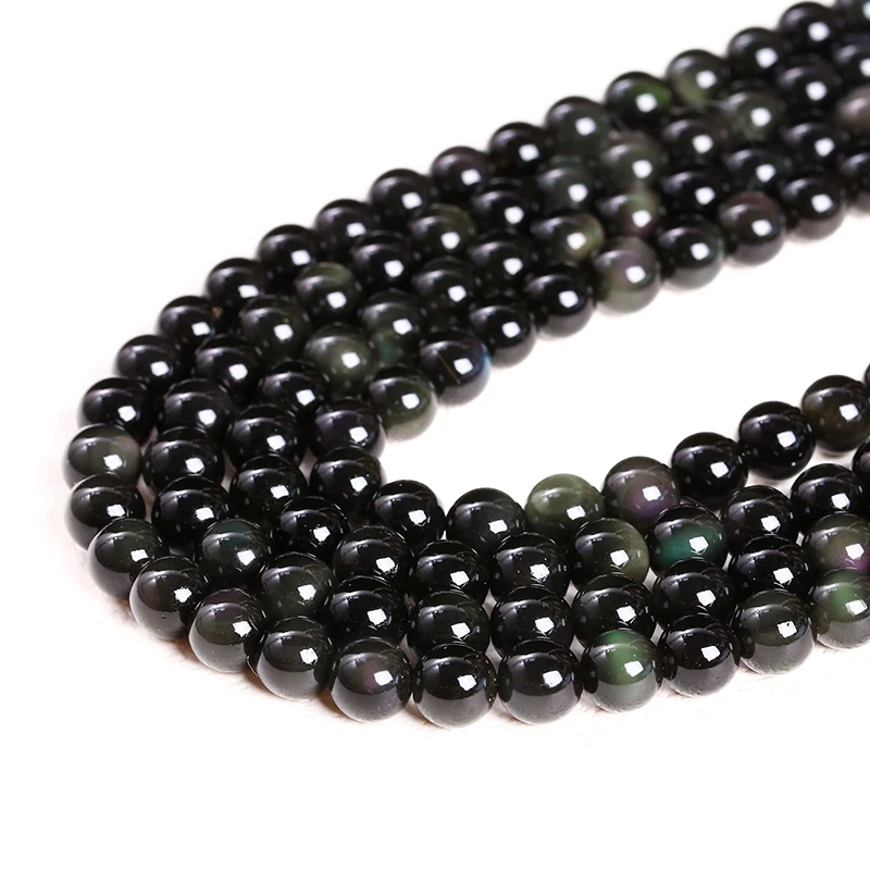 Top Quality Natural Stone Rainbow Shiny Obsidian Bead Charm Protection Loose Spacer For Jewelry Making Diy Necklace Bracelet
