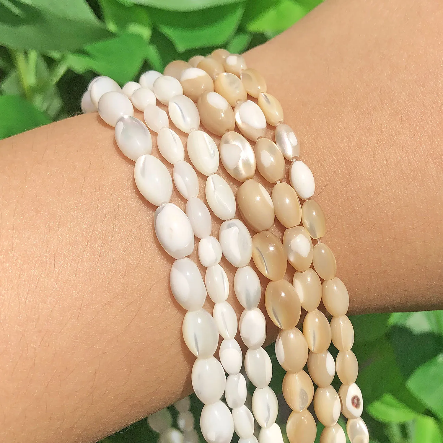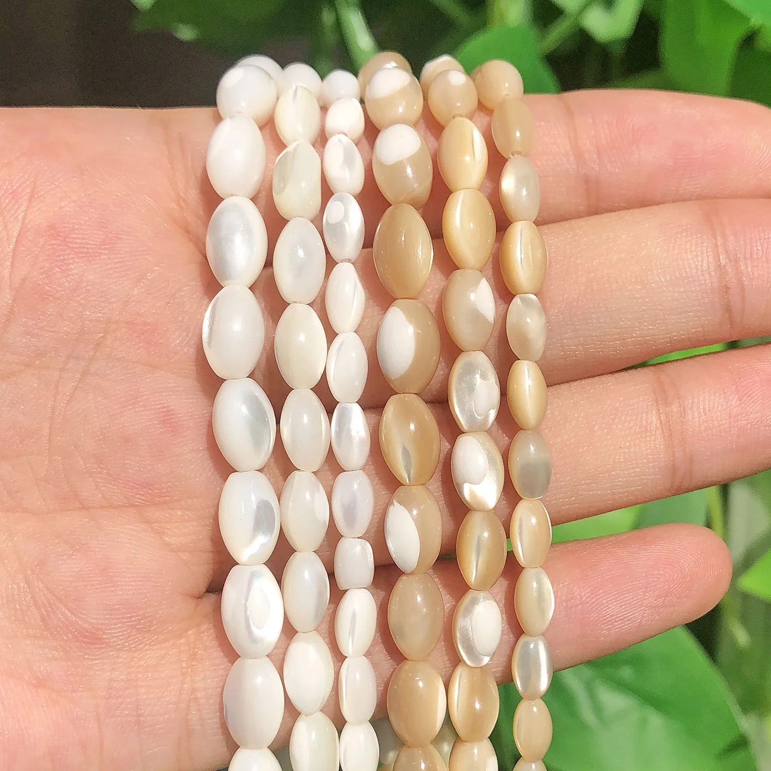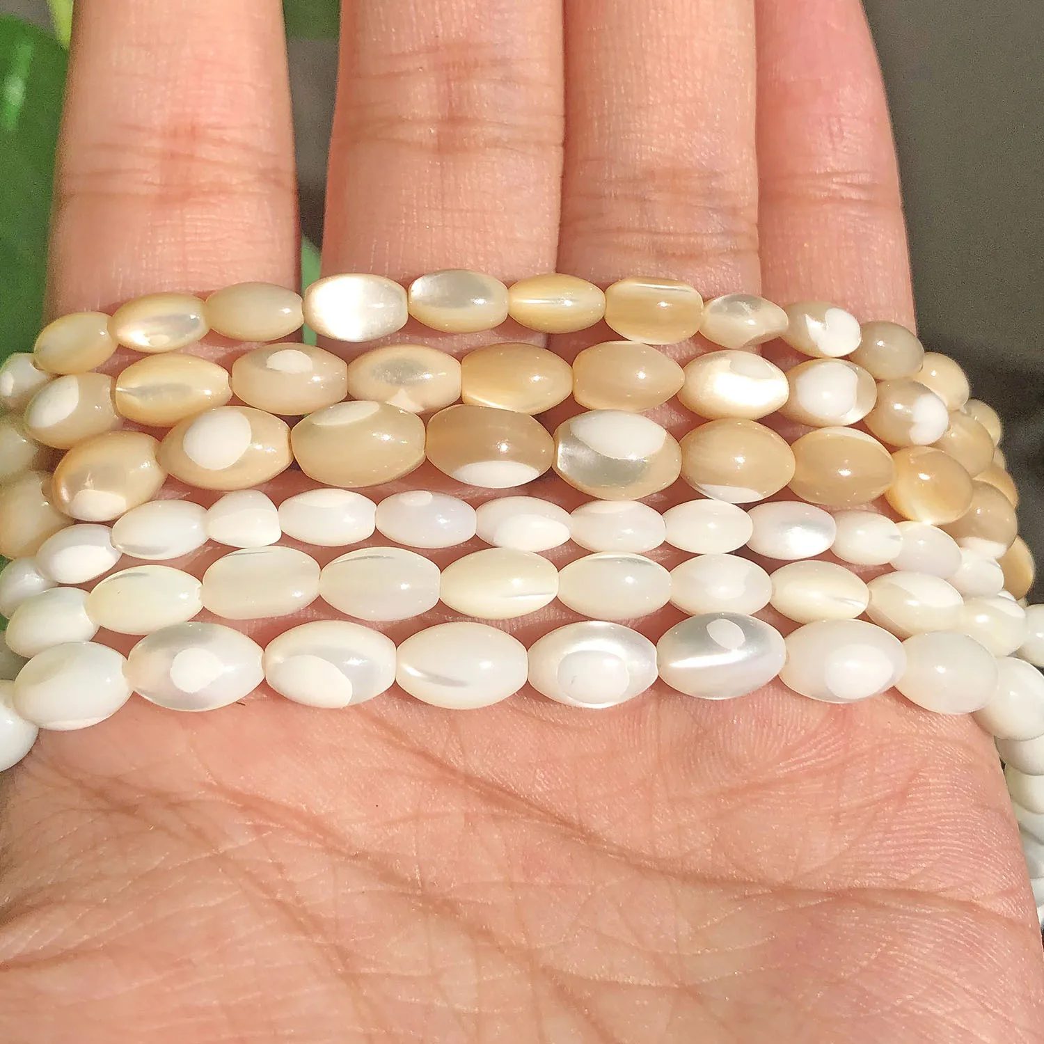Name:White Natural Color Mother Of Pearl Mop Shell beads Charms Oval Rice Loose Spacer Beads For Jewelry Making Diy Bracelet Earring