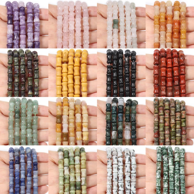 Wholesale 9x6mm Bamboo Joint Shape Beads Natural Amethyst Red Jasper Black Agate Loose Beads for Jewelry Making Diy Bracelet