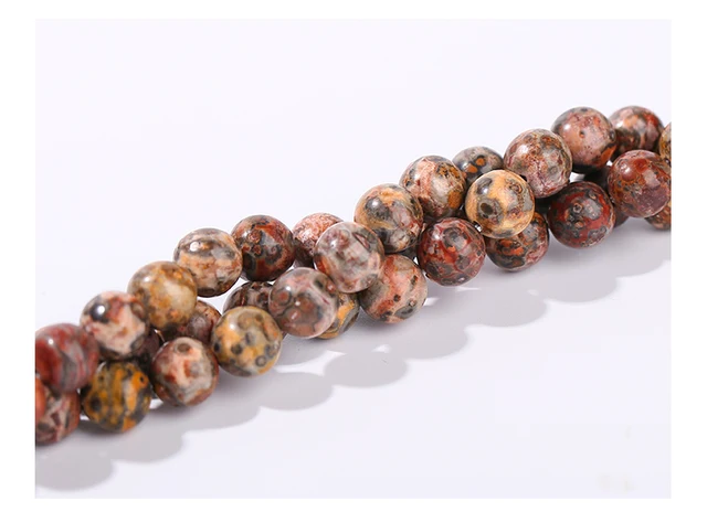 Wholesale Natural Red Leopard Skin Stone Bead Round Loose Beads for Handmade Jewelry Making DIY Bracelets Necklaces Accessories
