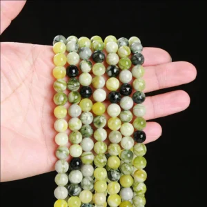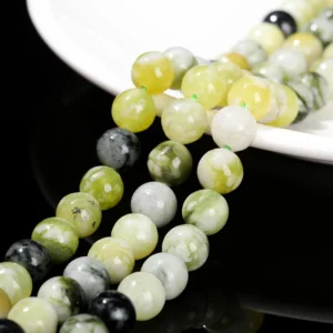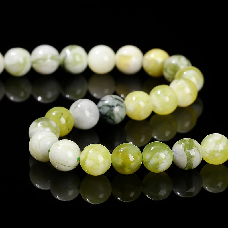 Wholesale Natural Stone Qin Flower Jade Bead Round Loose Spacer Bead for Jewelry Making DIY Bracelet Necklace Accessory 15″ Inch